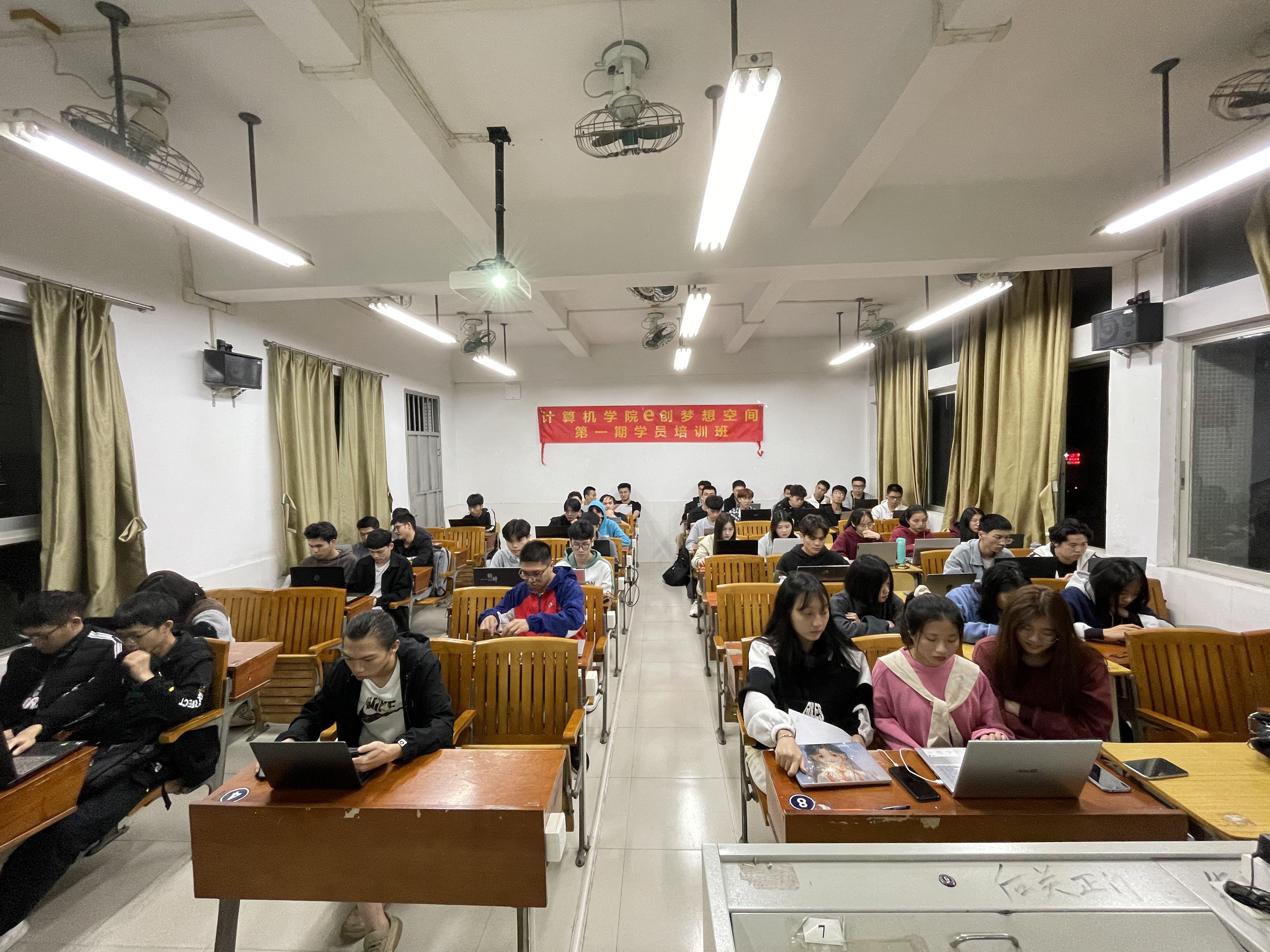 2021年3月23日,计算机学院e创梦想空间“第一期学员培训班”在教202顺利开班。培训共计报名248人次,经过简历筛选及面试,共遴选出54名学生参与此次培训。