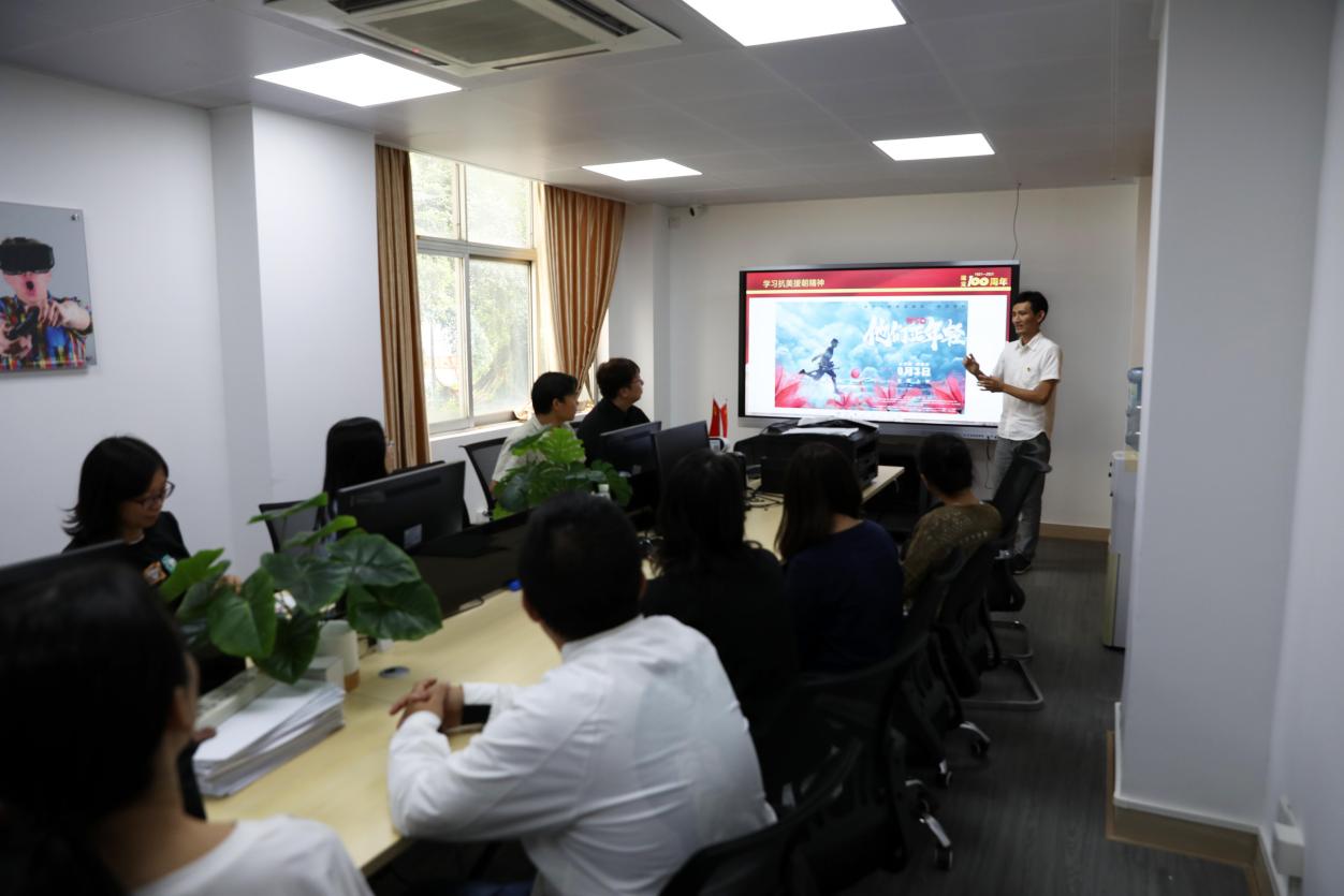 活动上,首先由党支部宣传委员苏建荣介绍红色电影《1950他们正年轻》,这是一部记录了26位90岁左右抗美援朝老战士影像的电影,通过不同军种、不同时期参战老兵的讲述,生动呈现了他们曾经热血的青春与梦想,还原了最真实的抗美援朝战场。