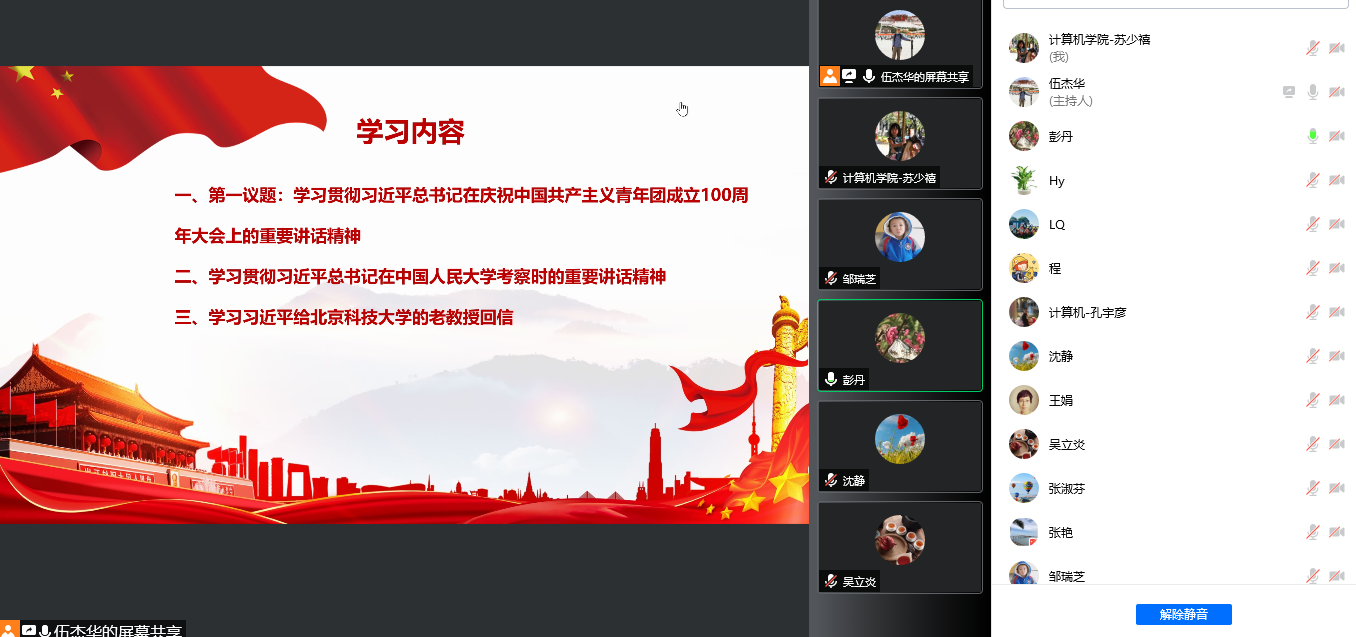 会议由支部书记伍杰华主持,另外支部孔宇彦、邹瑞芝等老师党员做了学习心得的分享。