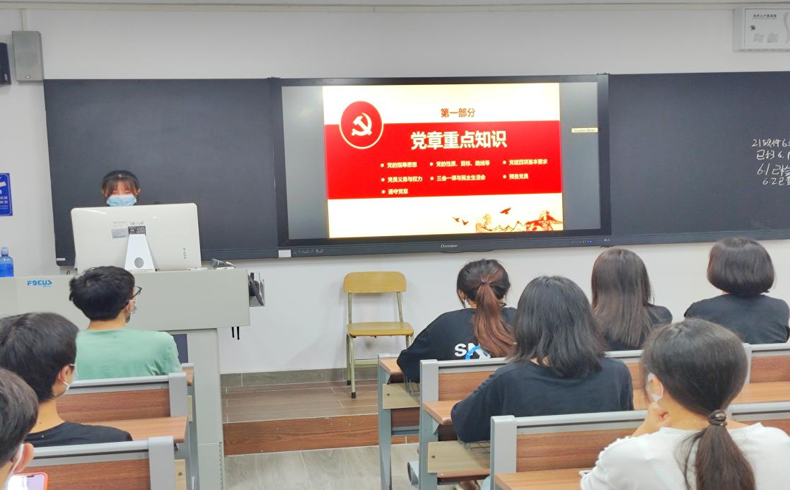在学习交流中,21网络3班曾俊乐带领入党积极分子们共同学习了党章的主要内容,随后,入党积极分子围绕“如何成为一名合格的大学生党员”“党章有哪些重点知识”“党的纪律有哪些内容”“该怎么样学习党章”这四个重点问题展开讨论。21软件4班焦紫彤同学表示,学习了党章知识后,自己的思想上都有很大的提高,更加想向党组织靠拢;21数媒2班黄楚芸同学表示,决心在今后的工作中,按照党章的要求,坚持党员标准,在平凡的学习和日常生活中干到最好,处处严格要求自己。