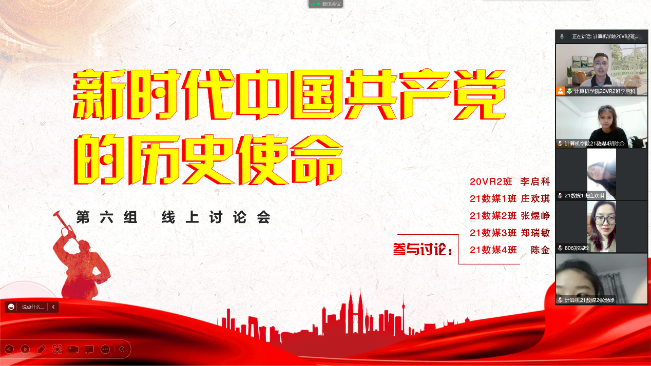 其中钟润柯说,通过这次的讨论和学习,我们清楚的认识到,中国共产党一经诞生,就把为中国人民谋幸福、为中华民族谋复兴确立为自己的初心使命。我们作为新时代的中国青年,要树立正确的世界观、人生观、价值观,在思想上要积极向党组织靠拢,用党的科学理论武装自己,学好专业知识,扎实技能本领,增强做中国人的志气、骨气、底气,不负时代,不负韶华。