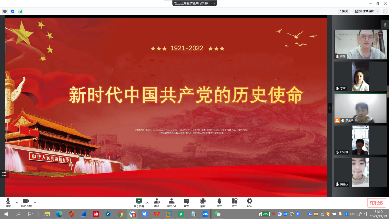 根据bat365在线平台官网《关于举办2022年第二期发展对象党课培训班的通知》的安排,为了进一步提升发展对象党性修养,推动发展对象互相促进、共同提高,12月14日,计算机与信息工程学院组织2022年下半年发展对象通过腾讯会议开展党课学习讨论会。