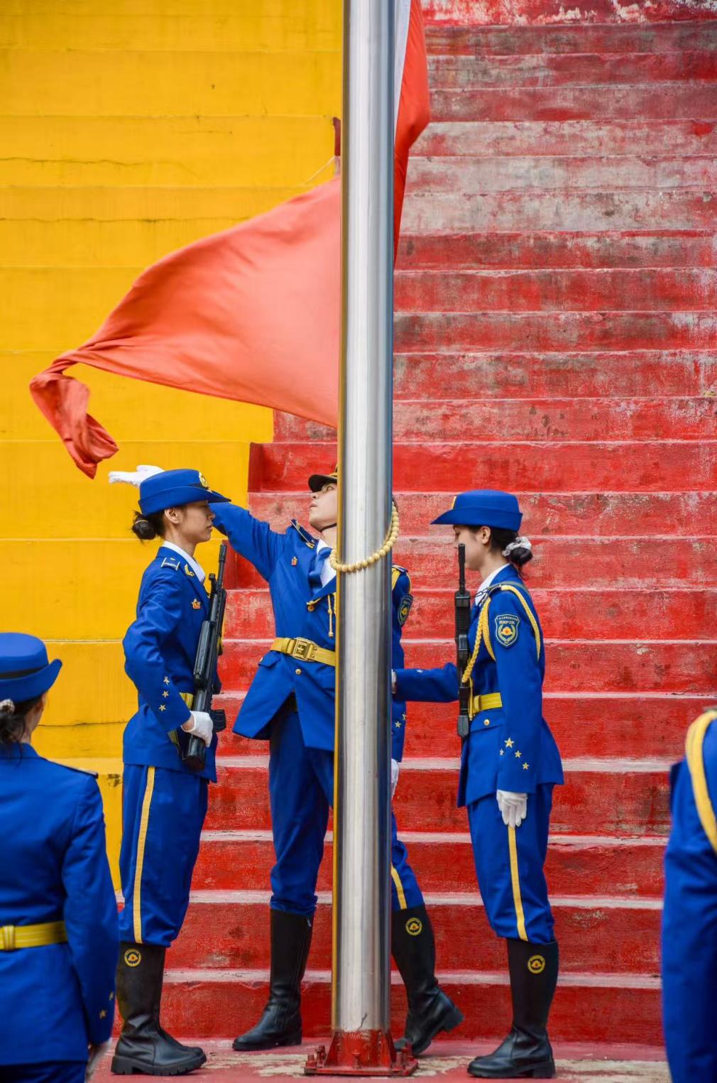 国歌奏响,全场肃立。在雄壮激昂的《义勇军进行曲》中,五星红旗冉冉升起,迎风飘扬。全体师生神情庄重,面向国旗行注目礼,表达对伟大祖国的无限热爱与忠诚,共同祝愿祖国繁荣昌盛、国泰民安。