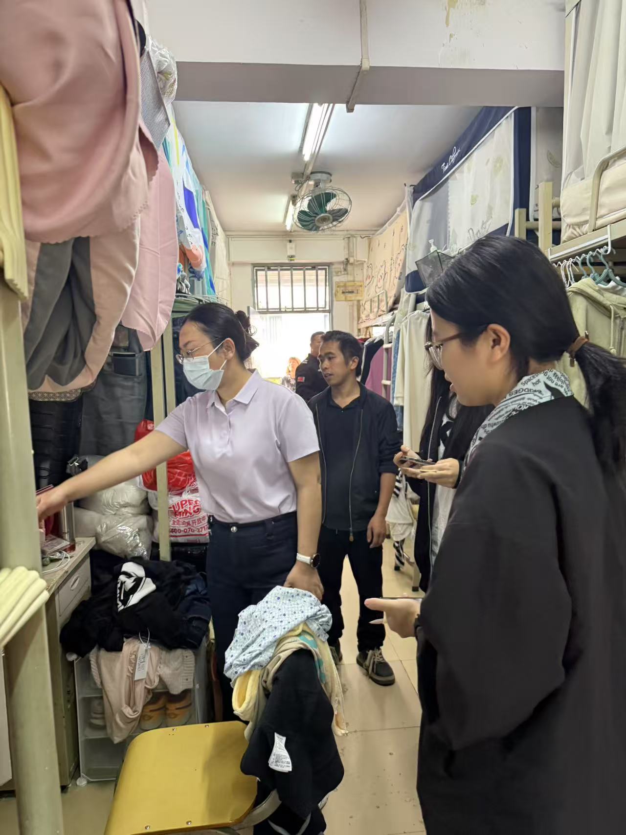 计算机学院党总支副书记张艳带领检查小组成员深入天河校区学生宿舍,围绕用电规范、线路安全、卫生状况及消防安全等方面展开细致排查。值得肯定的是,部分宿舍在安全合规的基础上,展现出良好的卫生习惯与文明的宿舍风貌:物品摆放整齐有序,空间洁净明亮,氛围温馨雅致。