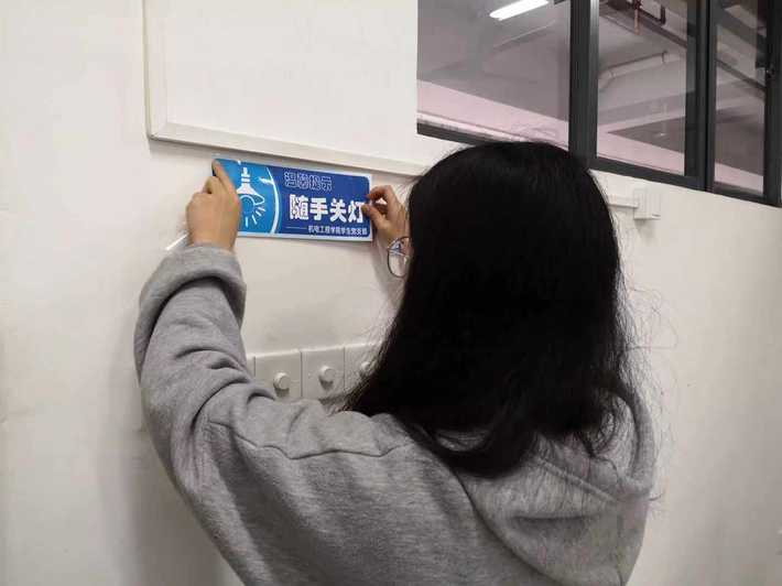 当天下午4点钟,同学们准时到达行知楼一楼智能制造创新应用实训基地集合完毕之后,拿着标识语,开始分工合作,分别前往行知楼二、三楼的指定课室、洗手间及实训基地。将所有电源开关及洗手台显眼处都贴上“随手关灯”、“节约用水”字样的标示语。经过一个多小时的忙碌,本次校园志愿服务活动顺利完成。