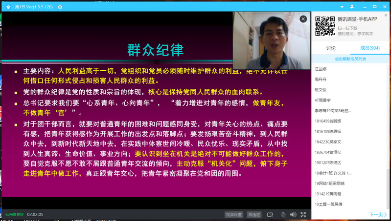 6月13日晚上19点,校团委书记陈冠锋为第34期入党积极分子党课培训班学员授课。陈冠锋从“民主集中制”、“党的纪律的基本内容与主要特征”、“加强党风廉政建设的意义与任务”、“严格执行和维护党的纪律”等四个方面的内容展开讲授,全方位向学员们展示党的组织制度与党的纪律。陈冠锋期望大家自觉抵制腐败问题,保持与时俱进、奋发有为的精神状态,做到政治上清醒、工作上勤奋、作风上朴素、生活上廉洁。