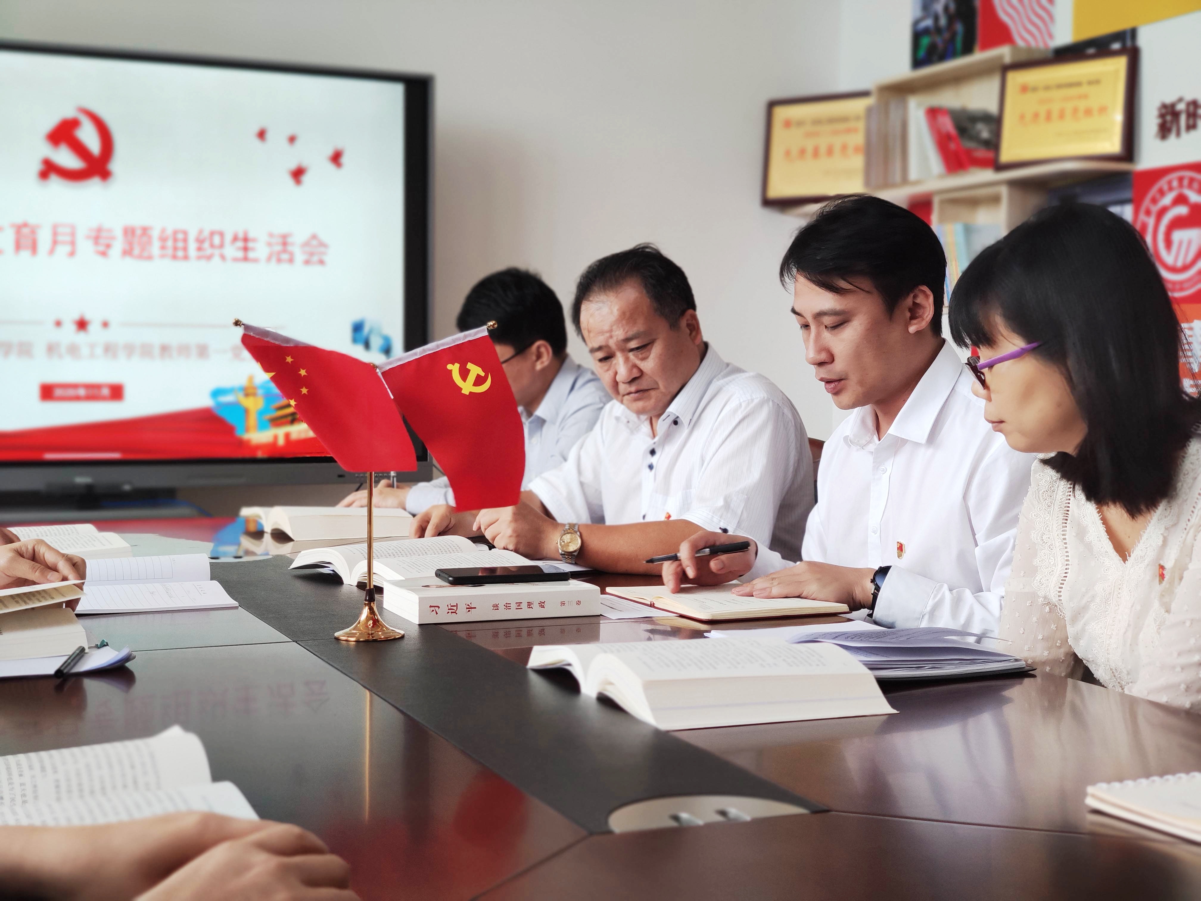 根据学校《2020年纪律教育学习月活动实施方案》的总体要求,2020年11月3日下午,机电工程学院教师第一党支部全体党员在明德楼1-217党员活动室开展专题组织生活会。