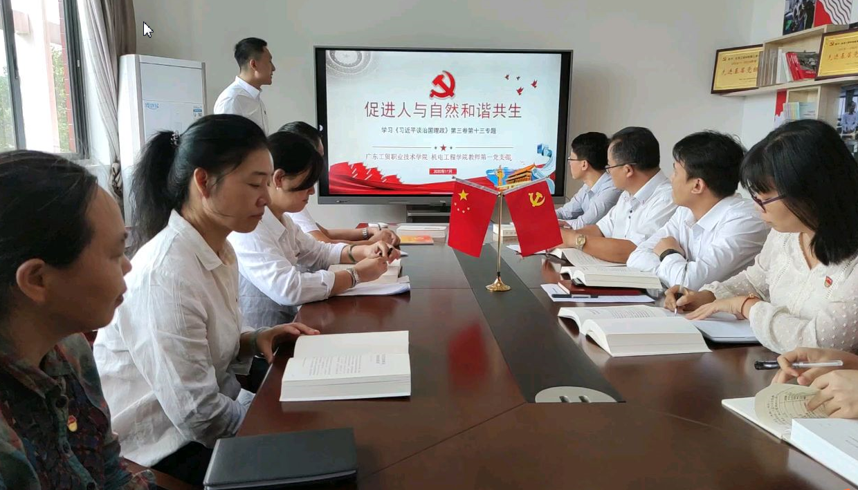 党支部书记原波首先带领大家集中学习《习近平谈治国理政》第三卷第十三专题“促进人与自然和谐共生”,进一步把学习贯彻习近平总书记系列重要讲话精神不断引向深入,切实用讲话精神武装头脑、指导实践、推动活动。