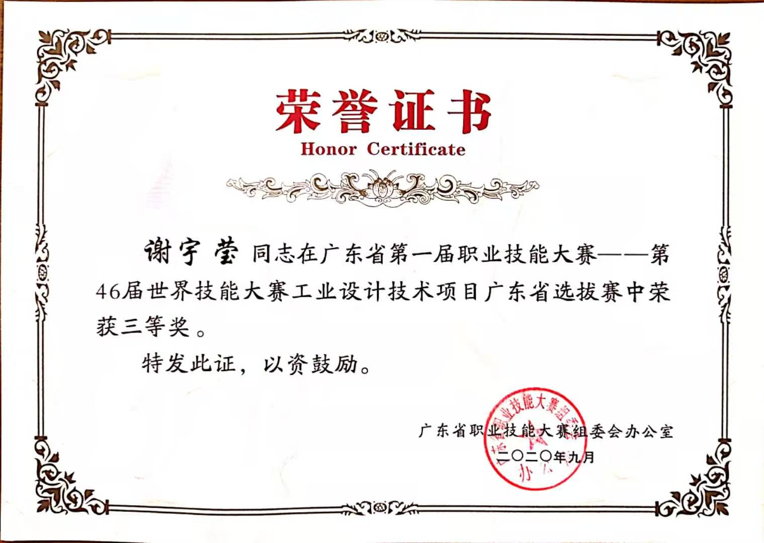 2020年9月5-10日,由广东省人力资源和社会保障厅主办、深圳市人力资源和社会保障局协办、深圳技师学院承办的2020年广东省第一届职业技能大赛(第46届世界技能大赛-工业设计项目竞赛)如期举行。全省共30余所职业院校参与了本次比赛的赛前选拔,经过省厅等多位专家的严格评审,共有12所院校获得参赛资格,365官网机电工程学院18级工业设计1班学子谢宇莹成功入选、并顺利参加了本次比赛。