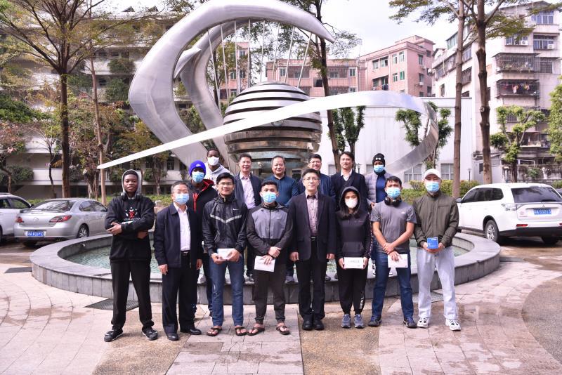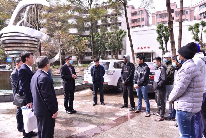 今年寒假,受国际疫情影响,机电工程学院9名留学生在天河校区西区度过假期。为了了解留学生的在校情况,增强人文关怀,完善留校学生管理方式、方法,1月22日下午,党委委员、副校长刘贻新,学生处处长刘建军,对外交流合作处处长黎明虹,机电工程学院党总支书记邵超城、院长徐勇军、党总支副书记梁超鹏一同前往慰问留学生。