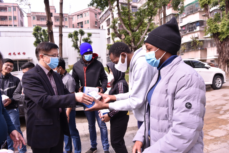 最后,学校领导为留学生派发口罩,为留学生加强自我防护带来保障。留学生们纷纷表示感谢,感谢学校一直以来的关心和照顾,在异国他乡同样拥有家的温暖和关怀。