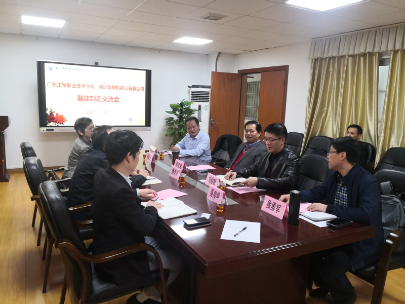 为推动智能制造教育教学改革和校企合作开发相关教学资源,1月26日,365官网与深圳华数机器人有限公司在天河校区召开智能制造教学改革交流会。学校党委副书记、校长何汉武,副校长刘贻新,深圳华数机器人有限公司总经理熊清平,副总经理莫奕举和业务经理刘丽琴,机电工程学院党总支书记邵超城、院长徐勇军及相关教师参加了本次会议。