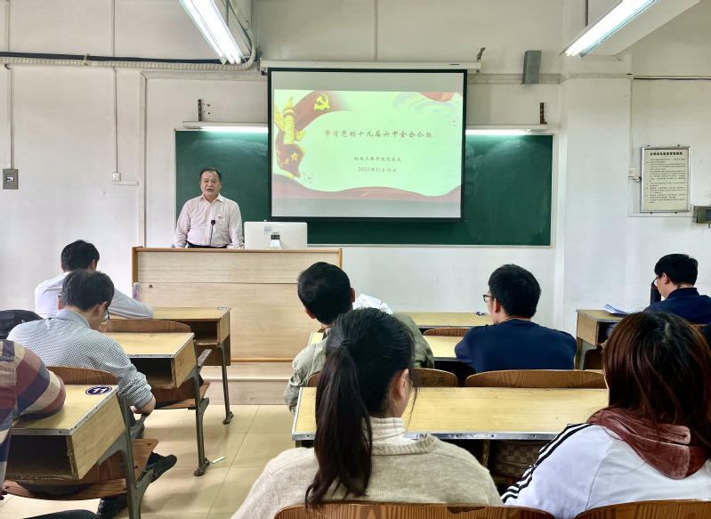 2021年11月16日下午,机电工程学院党总支在天河校区西区综合楼502室召开学习党的十九届六中全会公报会议,机电工程学院全体教师党员参加会议,会议由党总支书记邵超城主持。
