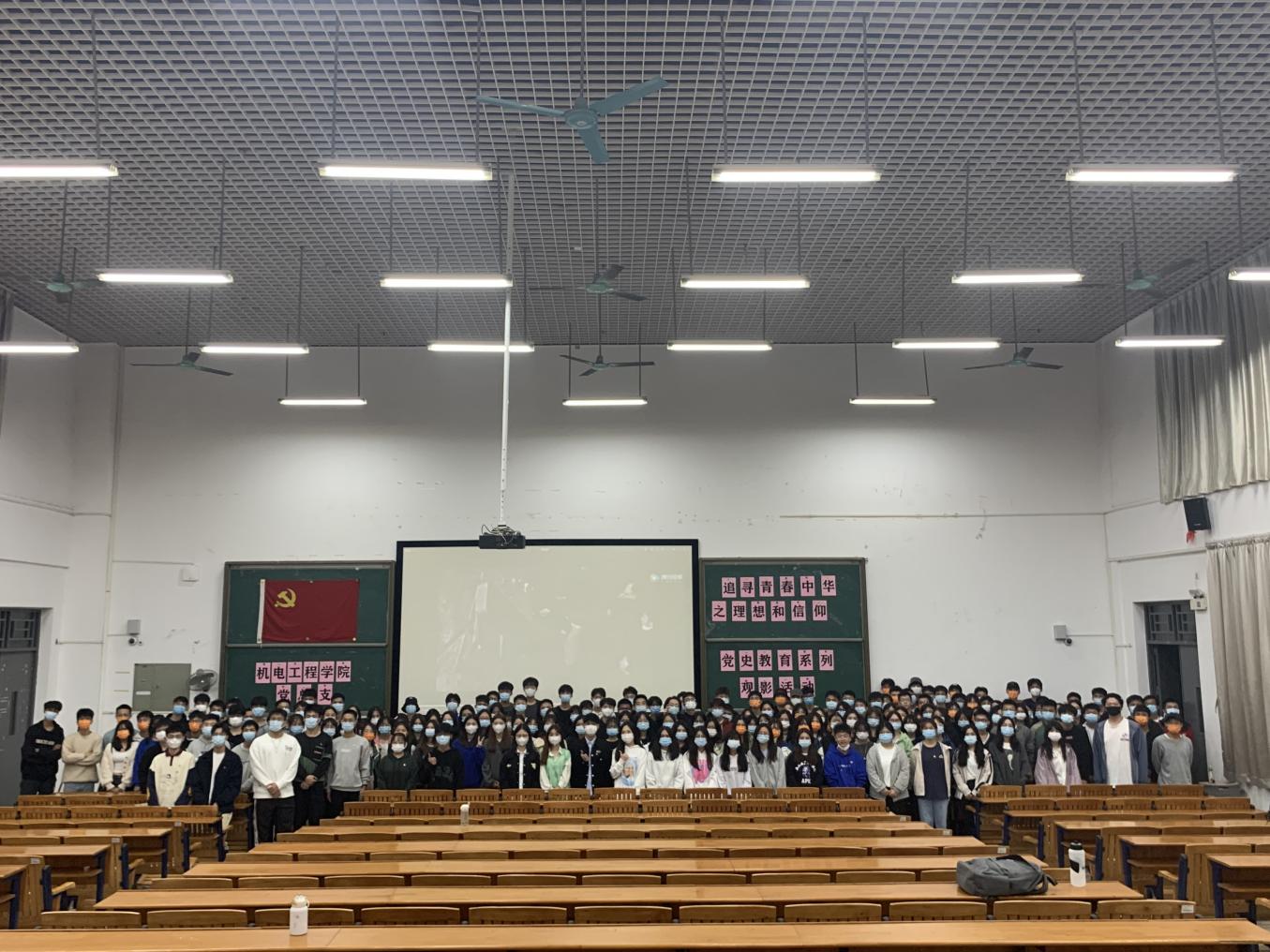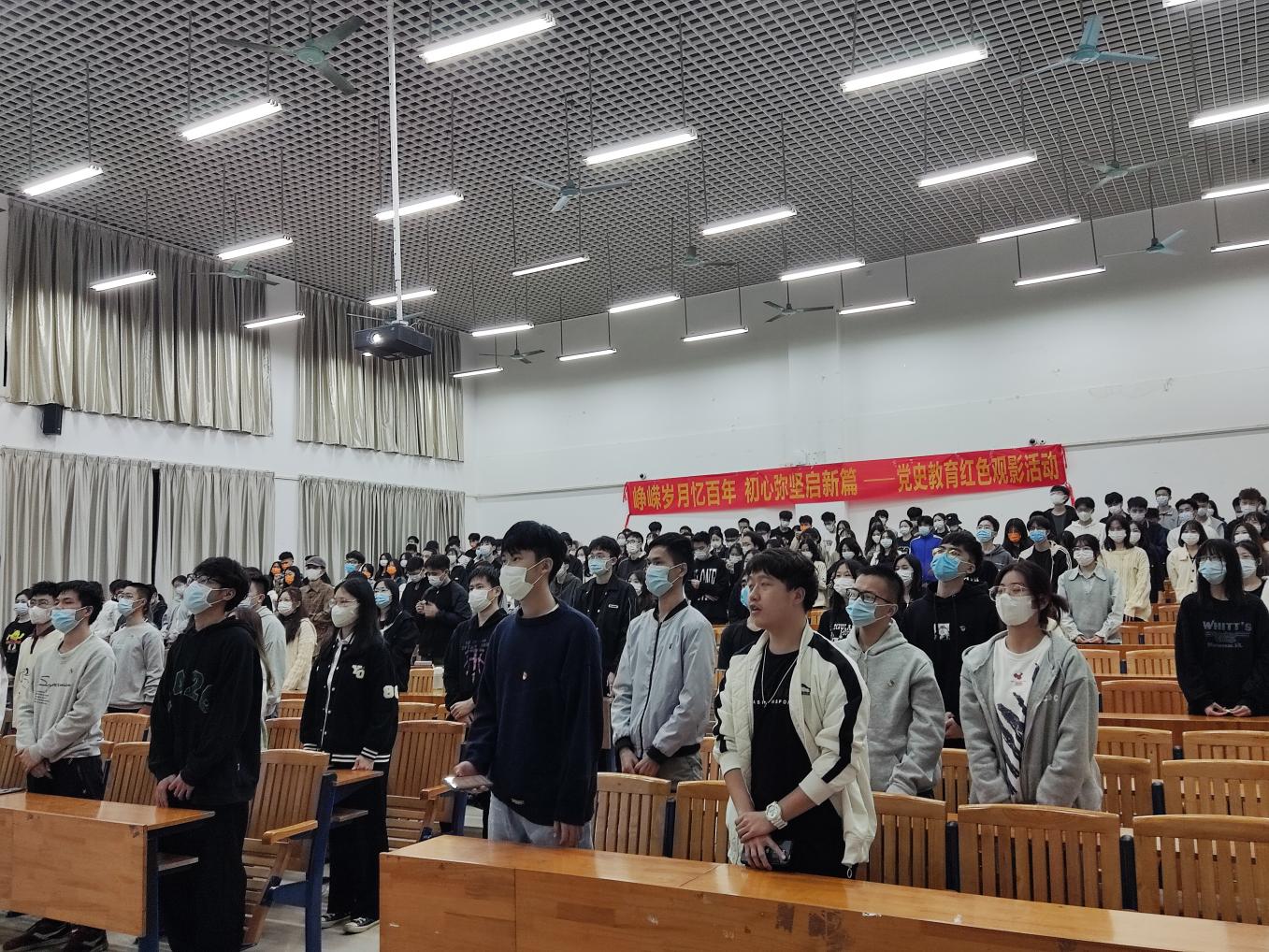 11月17日,为深入学习贯彻党的十九届六中全会精神,推动党史学习教育走进课堂,走向学生群体,潜移默化,凝聚奋进力量,从影片中熟读历史,汲取精神力量。机电工程学院党总支于明德楼1-104组织开展党史教育系列之红色观影活动,播放影片《革命者》。机电工程学院学生党员、2021级新生等180余人参加本次活动。根据疫情防控要求,全体成员亮码、测温入场并隔位就坐。