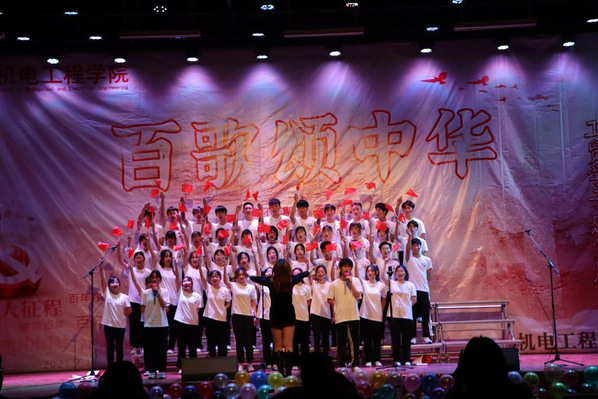 机电工程学院第二十届“百歌颂中华”校园合唱节活动,为全院师生献上了一场精彩纷呈的视觉盛宴。此次活动不仅展现出青年学生朝气蓬勃、积极向上的精神面貌,更展现新时代“三气”青年爱党、爱国的壮志豪情。中国共产党立志于中华民族千秋伟业,百年恰是风华正茂,征途漫漫,作为新时代青年更要砥砺奋进、阔步走向新征程!
