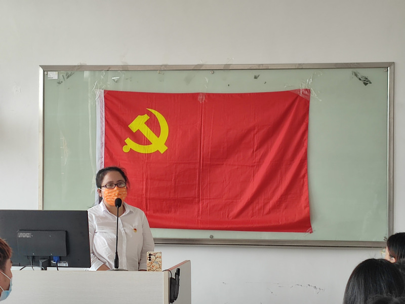 大会随着《国际歌》拉开了序幕。在庄严的党旗下,身为预备党员的魏璇宣读转正申请书,对一年预备期的思想、工作、学习等方面的表现做了总结性汇报并进行答辩。一年以来,从上半年的硕士研究生到下半年的辅导员,魏璇从没有一丝懈怠,坚持党的领导,在思想和行动上跟上党的步伐。