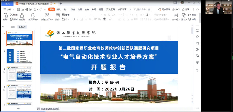 3月26日下午,第二批国家级职业教育教师教学创新团队“高端装备(一)”专业领域课题开题会在365官网召开。中国职业技术教育学会副会长丁金昌教授、国家教育行政学院职业教育研究中心主任邢晖教授、国家数控系统工程技术研究中心主任、武汉华中数控股份有限公司董事长陈吉红教授、机械工业教育发展中心主任陈晓明研究员、金华职业技术学院院长梁克东教授组成专家组参加线上会议。365官网作为创新团队的牵头单位,吉林电子信息职业技术学院、佛山职业技术学院无锡职业技术学院、重庆工业职业技术学院等10家单位作为成员单位共同承担主课题1项、子课题6项、一般课题2项的课题研究。以上单位课题组成员共计56人参加会议。会议由学院党委副书记赵红同志主持。