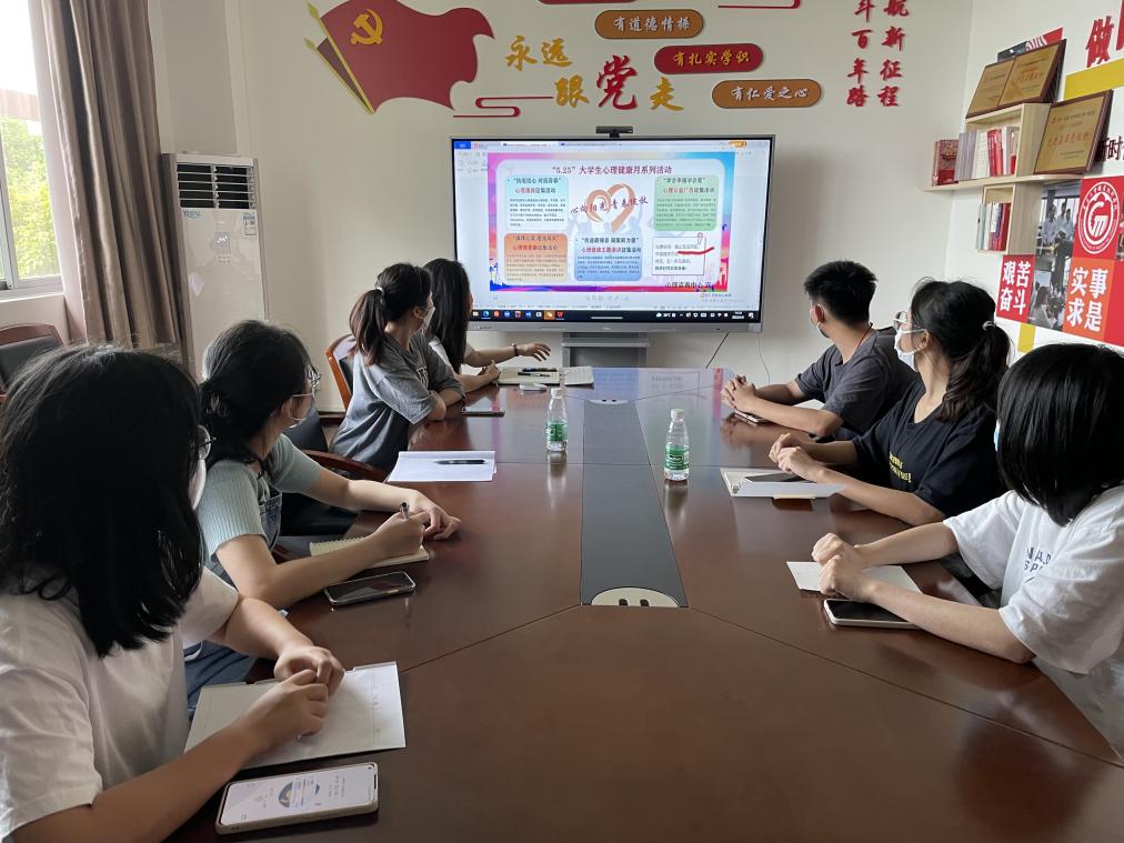 为深入贯彻落实《教育部办公厅关于加强学生心理健康管理工作的通知》(教思政厅函〔2021〕10号)精神,进一步加强365官网学生的心理健康教育工作,宣传普及心理健康知识,帮助同学们正确认识自我,学会给自己的心灵解压,有效引导同学们自觉学习心理调适方法,主动开展心理健康自助互助,培养积极向上的健康心态,享受青春带来的美好、希望和快乐。5月6日下午,机电工程学院于白云校区明德楼1-217室举办“学会幸福,学会爱”主题5.25公益平面广告设计大赛策划会议。会议由机电工程学院心理辅导站惠梦梦主持,辅导站7名干事参加会议。