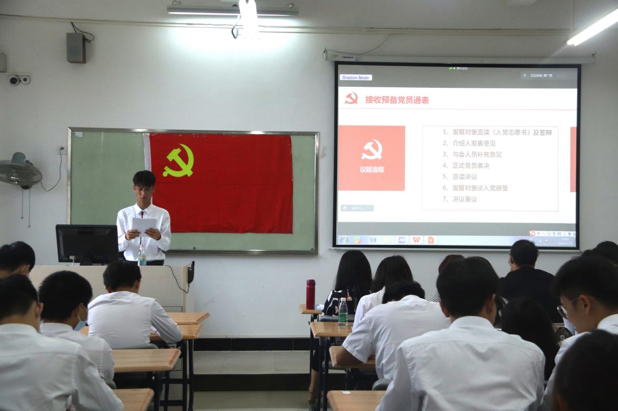 随后,入党介绍人介绍发展意见,与会人员补充意见,在场的正式党员进行不记名投票表决,一致同意11名发展对象加入中国共产党。由史旭同志宣读了《关于通过接收黄庆辉等11名同志为预备党员的决议》。
