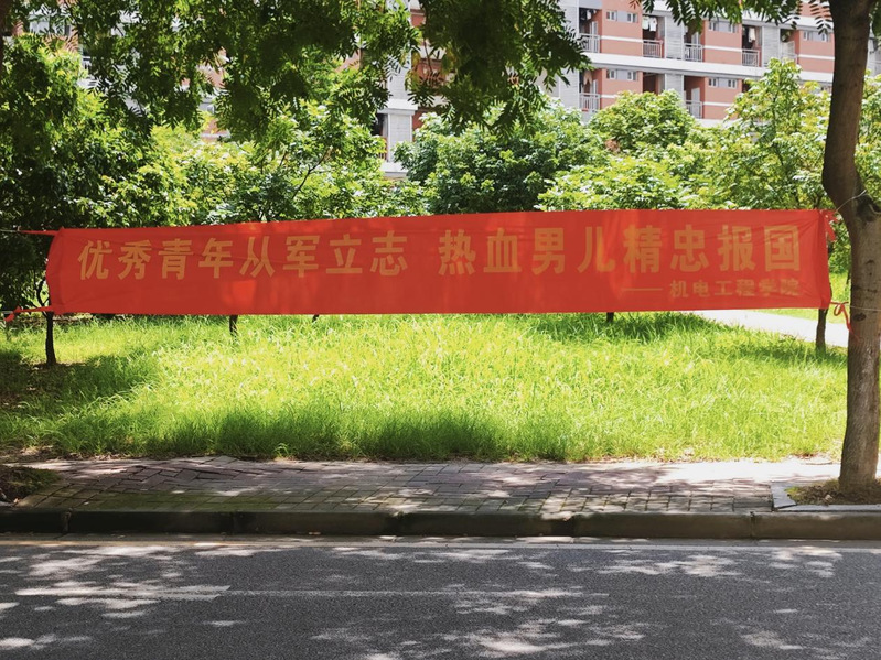 365官网机电工程学院多形式积极抓好大学生征兵宣传活动,校园里随处可见悬挂的征兵宣传横幅标语,营造出浓厚参军氛围,有效激发了365官网适龄在校大学生参军、献身国防的自觉性和积极性。