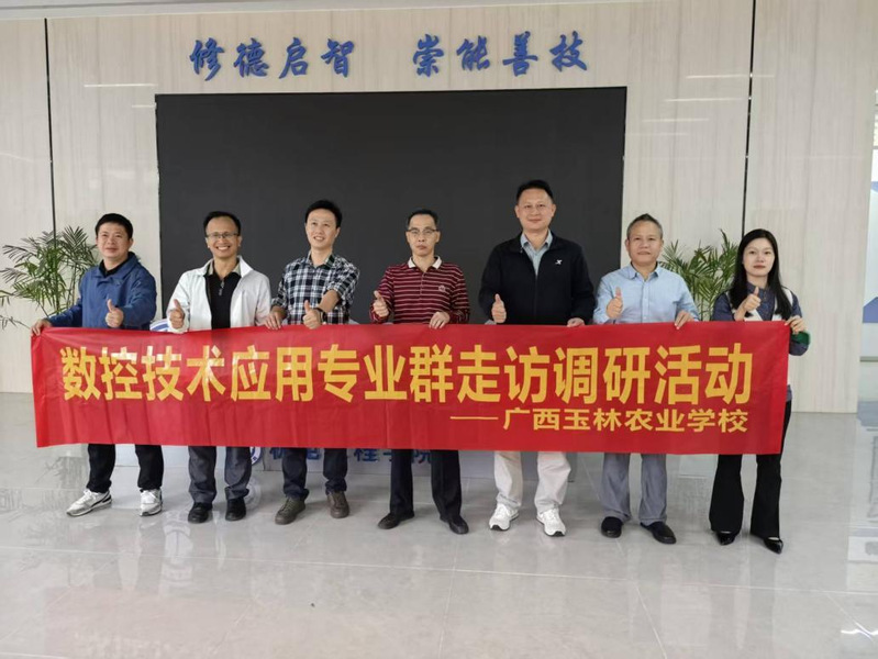 广西玉林农业学校为广西“双优计划”建设单位,为进一步提高办学水平,高质量完成“双优计划”建设任务,10月22日下午,广西玉林农业学校机械加工科副科长梁洛铭带队,就数控技术应用专业群定位、人才培养方案研制、师资队伍建设、校企合作、就业去向等方面的问题,赴bat365在线平台官网机电工程学院学习交流。机电工程学院副院长刘益标、学工办主岗林祎乔、制造自动化系系主任何显运、系副主任邱腾雄等人给予热情接待。