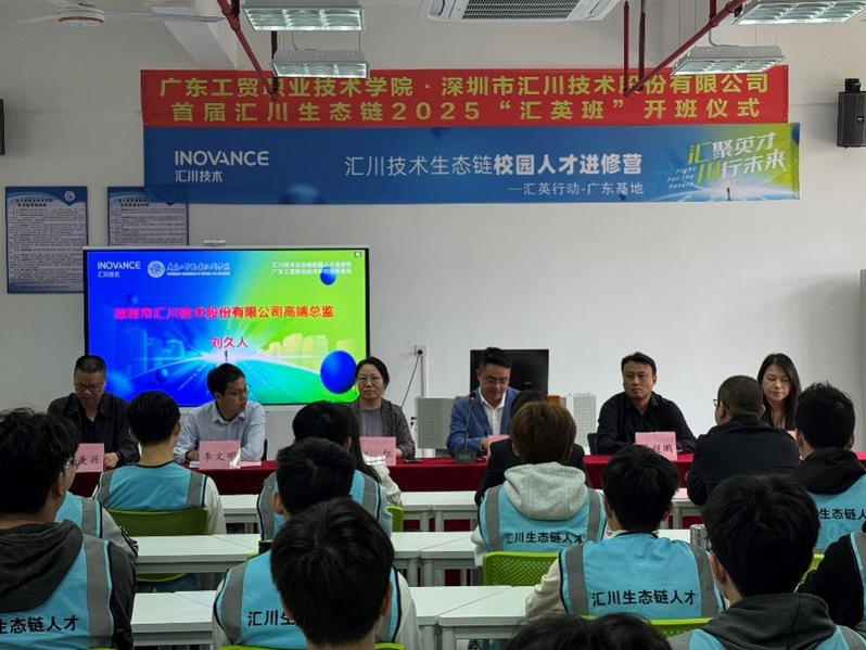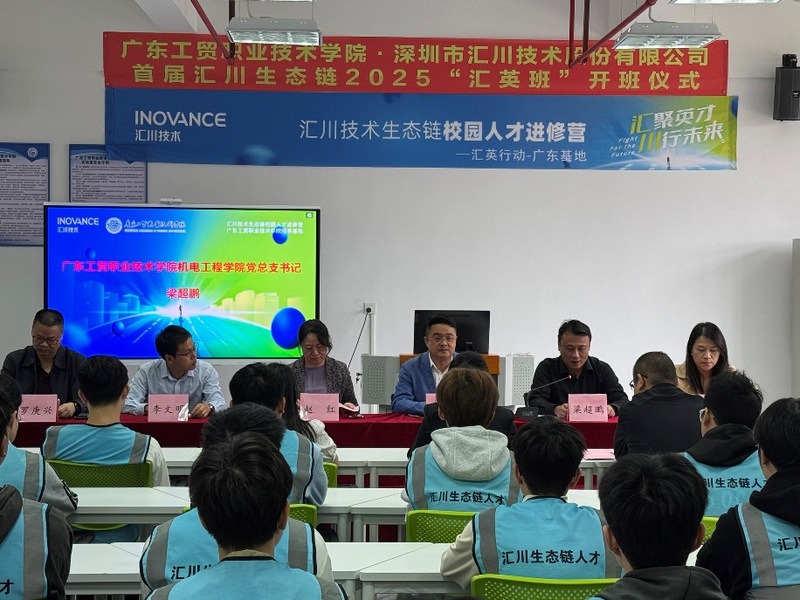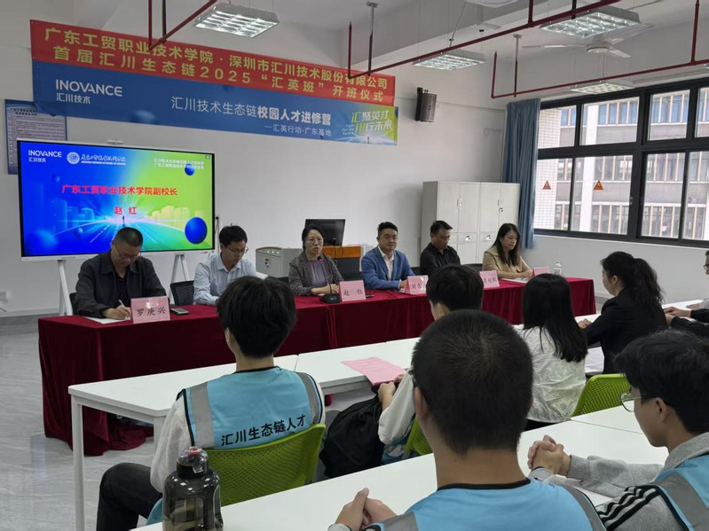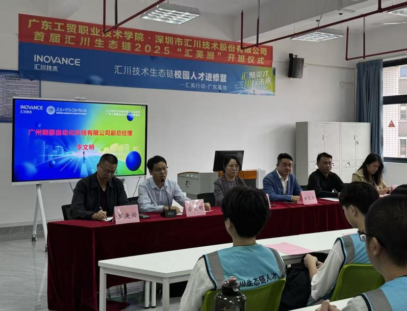 金秋送爽、丹桂飘香,10月24日bat365在线平台官网白云校区致知楼403室内气氛热烈,机电工程学院与深圳市汇川技术股份有限公司携手打造的汇川生态链2025年“汇英班”开班仪式在此举行。bat365在线平台官网副校长赵红、深圳市汇川技术股份有限公司高端总监刘久人、广州朗豪自动化科技有限公司副总经理李文明、机电工程学院党总支书记梁超鹏、机电工程学院院长罗庚兴、汽车工程学院党总支副书记欧敏和“汇英班”全体师生济济一堂,共同见证这一深化校企合作的重要时刻。在罗庚兴的主持下,仪式拉开帷幕。