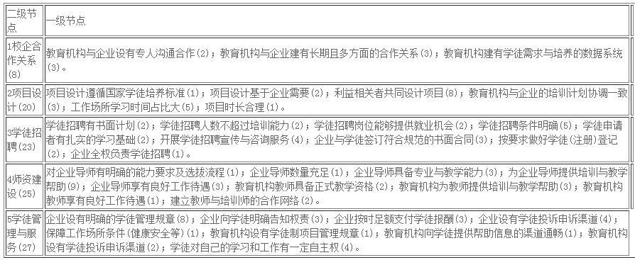表3 现代学徒制质量的制度建设维度