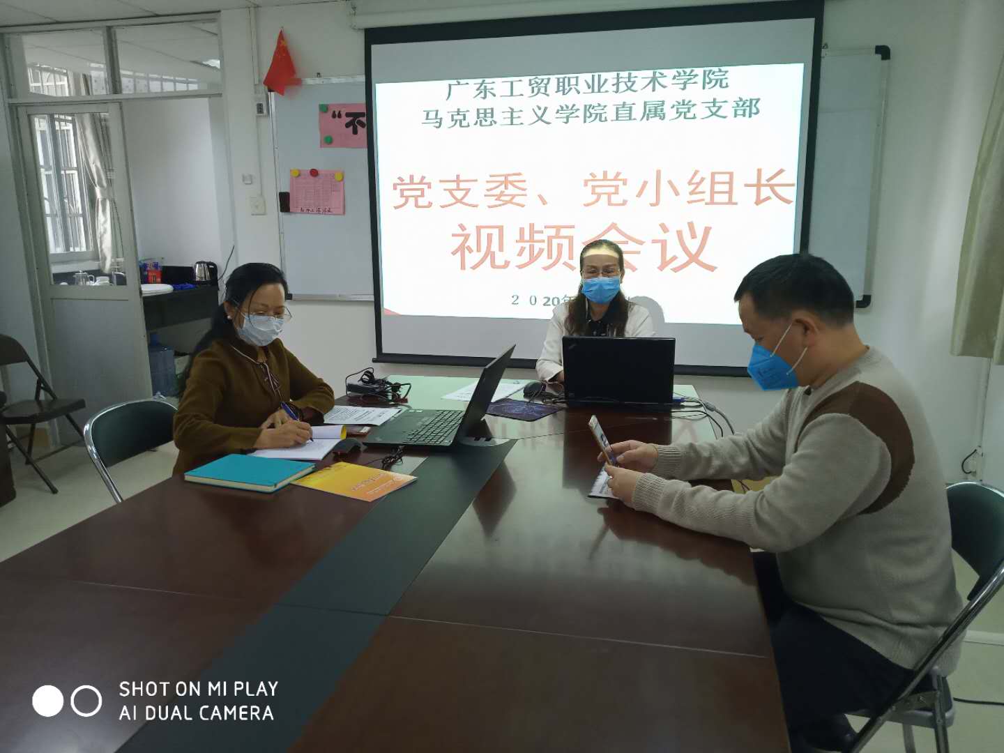 根据《中共广东省委教育工委关于高校基层党组织在疫情防控期间开展组织生活的通知》要求,马克思主义学院在2020年3月18日下午利用“学习强国”平台,组织开展以“疫情防控做表率 践行初心担使命”为主题的支委视频会议,会议由李瑞清书记主持召开,支委委员丁妙珍、晏意华、张夏青,党小组组长梁晓彬、贾云飞参加此次会议,党务代理秘书陈朝豪列席会议。