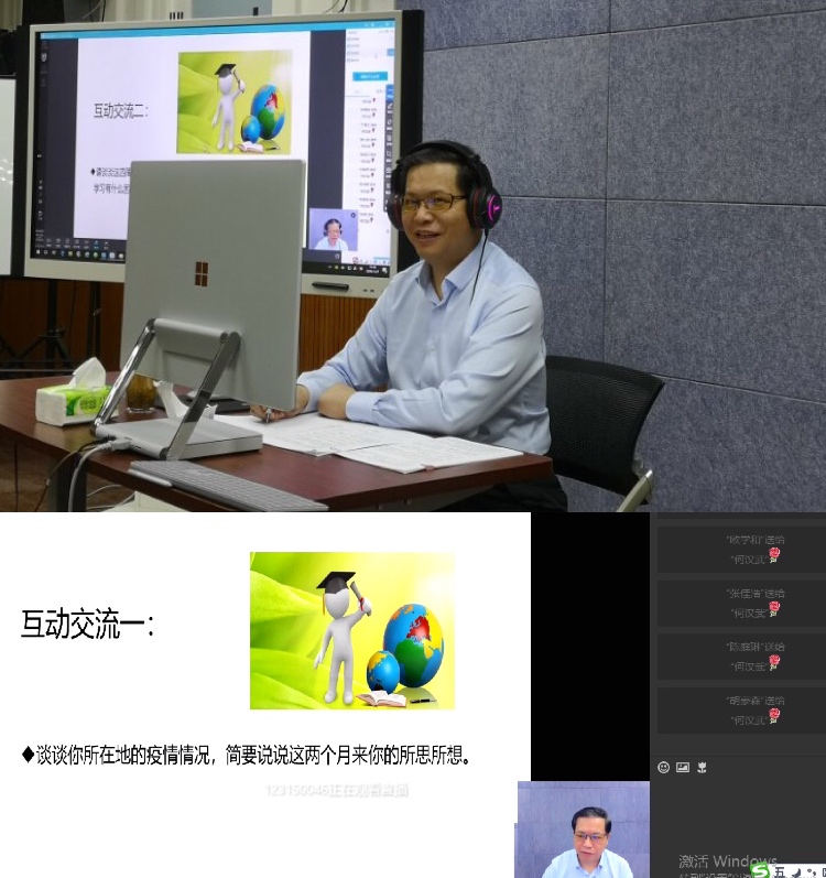 在讲座的最后一部分,何校长重点介绍了365官网为防控新冠肺炎疫情和保障网络教学的顺利开展所采取的重要举措,通过数据分析了自3月2日线上开学以来教学工作的开展情况,并就疫情期间同学们在网络学习过程中遇到的困难和问题进行了精彩的交流,关心同学们学得如何,感受怎样?交流时,何校长还向同学们展示了365官网开展线上教学以来教师教学情况和学生学生效果的调查结果,勉励同学们努力适应学习方式的转变,利用网络课堂不断提升自己,真正实现“停课不停学”。最后,何校长向同学们提出三点希望:一是放平心态,战胜诱惑;二是挑战自我,严以自律;三是怀抱希望,阳光向上。