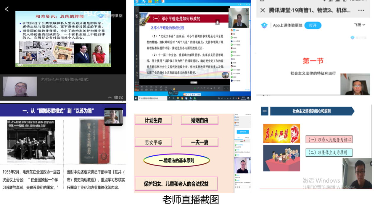 这次活动以党小组为单位进行。马克思主义学院直属党支部“基础课党小组”、“概论课党小组”和“形势与政策课党小组”分别组织各自的党员教师利用腾讯课堂、zoom、钉钉、优幕课平台和微信等网络平台开展了新入职教师和骨干教师的课程教学观摩活动,在观摩之后党小组组长组织大家对老师在线教学的表现进行集体评议,在评议中学习经验、发现问题、共同提高。在活动开展过程中,教师们分别根据各自课程的特点并结合当前全国抗击疫情的大背景,按照习近平关于思政课“八个相统一”的要求,把疫情期间出现的感人故事和生动事例恰当地融入到课程教学中去,把理论教学和课外实践有机地结合到一起,有效地提高了思政课的理论性、实效性和针对性,受到了同学们的普遍欢迎。