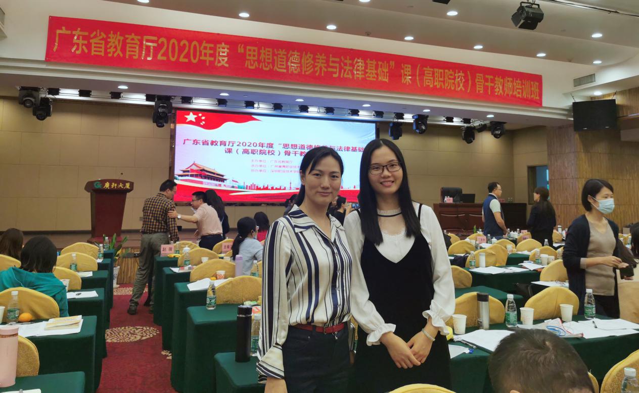 由广东省教育厅主办、广州番禺职业技术学院承办、深圳职业技术学院协办的2020年度“思想道德修养与法律基础”课(高职院校)骨干教师培训于11月6-7日在广州市广轩大厦举行,365官网马克思主义学院蔡乙华老师和李爽老师参加了此次培训。