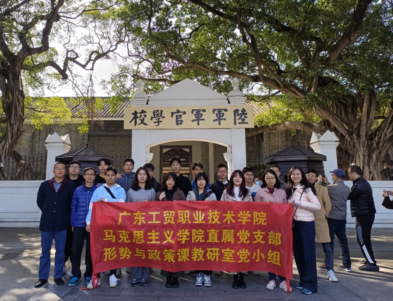 为贯彻落实习近平全国思想政治理论课教师座谈会精神,有效推动365官网大学生社会实践活动的开展,学习和体验革命先烈们艰苦奋斗、不怕牺牲的革命精神,切实提升师生党员思想政治素质。12月5日马克思主义学院 “形势与政策”教研室(党小组)全体老师及部分学生代表前往广州市黄埔军校旧址纪念馆进行参观,开展了以“重温近代史,建功新时代”为主题的社会实践活动。