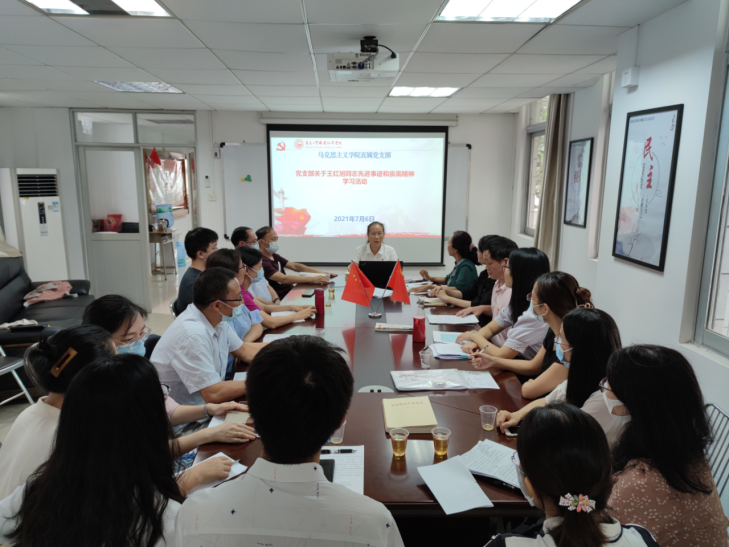 近日,教育部印发通知,在教育系统深入开展向“全国优秀教师”王红旭同志学习活动。2021年6月1日,重庆大渡口区育才小学教师王红旭同志勇救两名落水儿童,献出了自己年仅35岁的宝贵生命。为进一步深入宣传学习王红旭同志先进事迹和崇高精神,深入学习贯彻习近平新时代中国特色社会主义思想特别是习近平总书记关于教师队伍建设系列重要讲话精神,大力弘扬高尚师德师风,根据省教育厅的安排部署和学校党委的通知要求,马克思主义学院直属党支部于7月6日召开王红旭同志先进事迹专题学习会议,全体教职工党员参加会议。