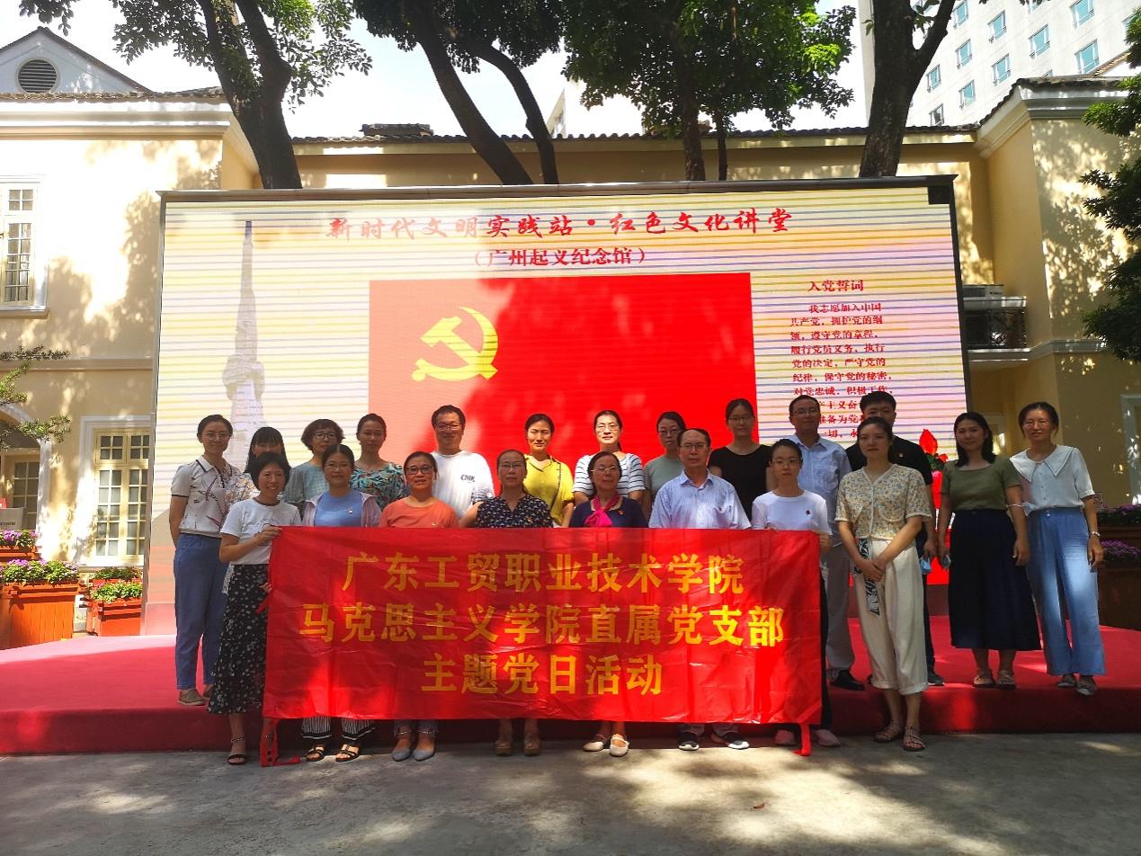 为深入贯彻习近平总书记在党史学习教育动员大会上的重要讲话精神,落实学校党委关于党史学习教育部署和要求,推动党史学习教育深入开展,7月18日下午,马克思主义学院直属党支部组织全体党员到广州起义纪念馆开展“瞻仰革命遗址,传承革命精神”党史学习教育,参观广州起义纪念馆,回顾广州起义历史,开展革命传统教育活动,重温党的光辉战斗历程,缅怀革命先烈的丰功伟绩,传承革命先辈的奋斗精神。