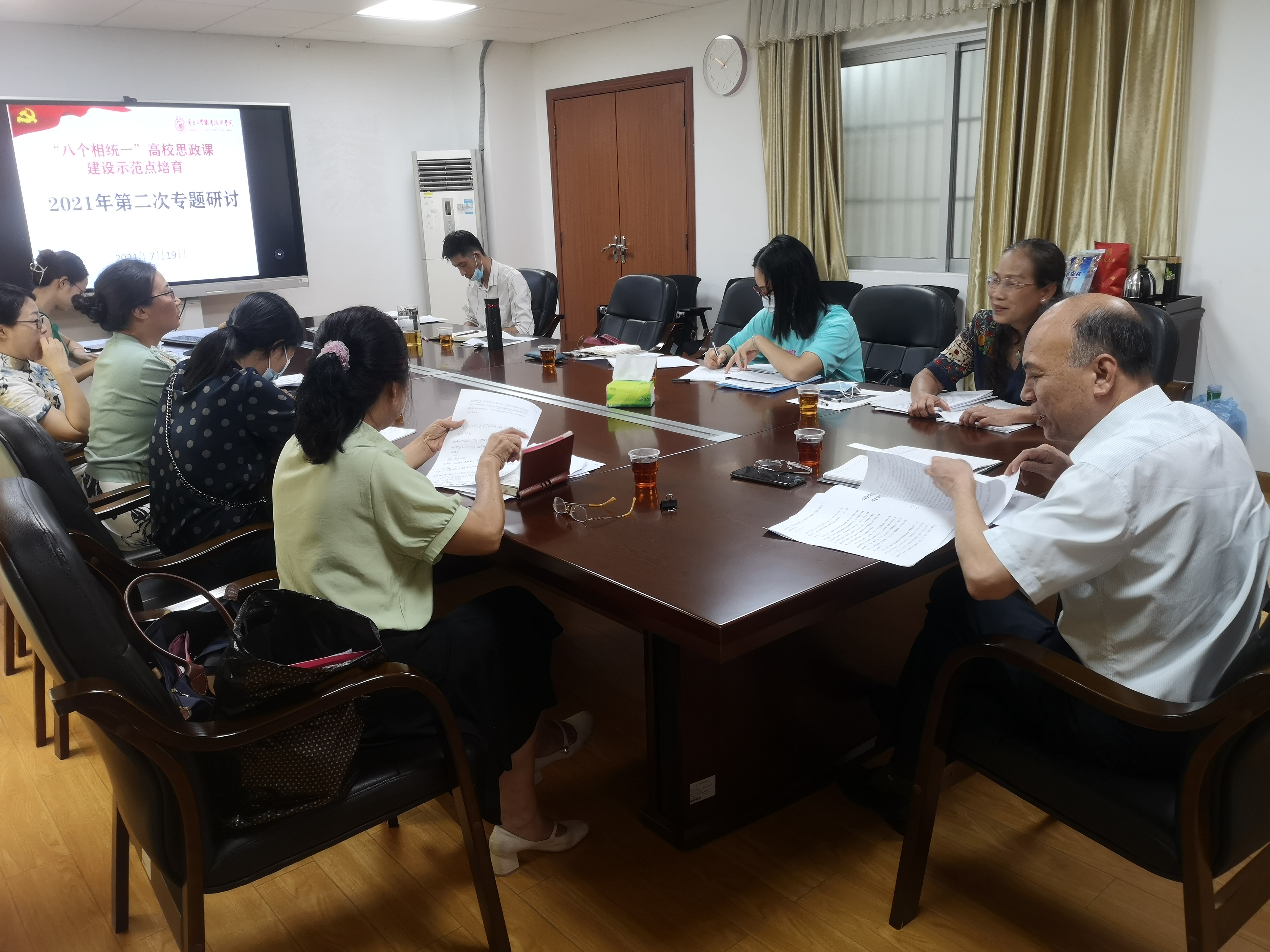 7月19日上午,马克思主义学院在西区第一会议室开展“八个相统一”高校思政课建设示范点培育2021年第二次专题研讨会,学校党委副书记、纪委书记、马院院长夏韩辉、马院常务副院长李瑞清、副院长丁妙珍和部分教师代表参加了此次研讨会。