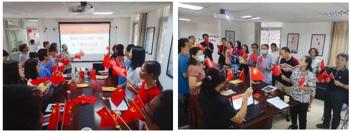 党支部此次唱诵主题党日活动,不仅是奉献了一场精彩的视听盛宴,更充分展示了马院教师昂扬向上的精神面貌和激情振奋的时代风采。活动在《歌唱祖国》集体大合唱中走向了高潮,洪亮的声音响彻全场,舞动的红旗整齐划一,真挚的感情自然洋溢。激情的红歌虽会落幕,但红色精神将持续流淌在马院教师血液里,时刻提醒马院教师不忘立德树人初心、牢记为党育人为国育才使命,为培养德智体美劳全面发展的社会主义建设者和接班人作出新的更大贡献。在中华人民共和国成立72周年大庆来临之际,为党和祖国献上马院直属党支部最真诚的祝福,祝福我们伟大的党青春永驻!祝福我们伟大祖国繁荣昌盛!