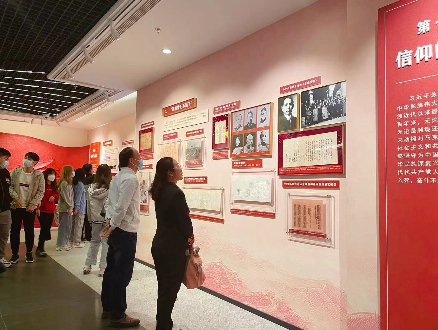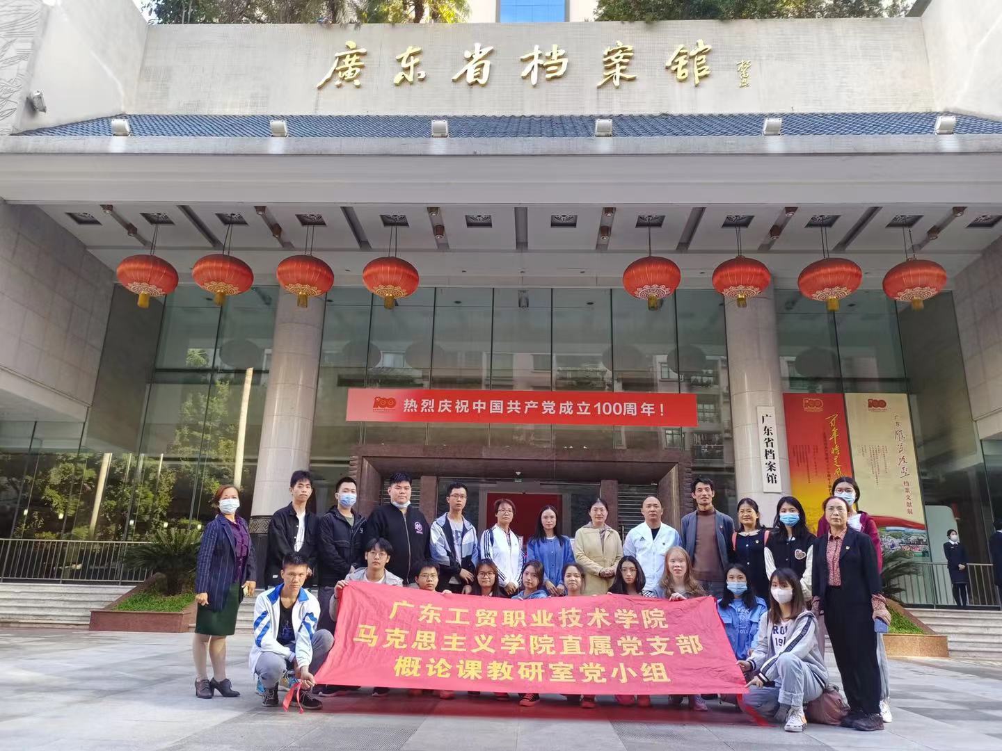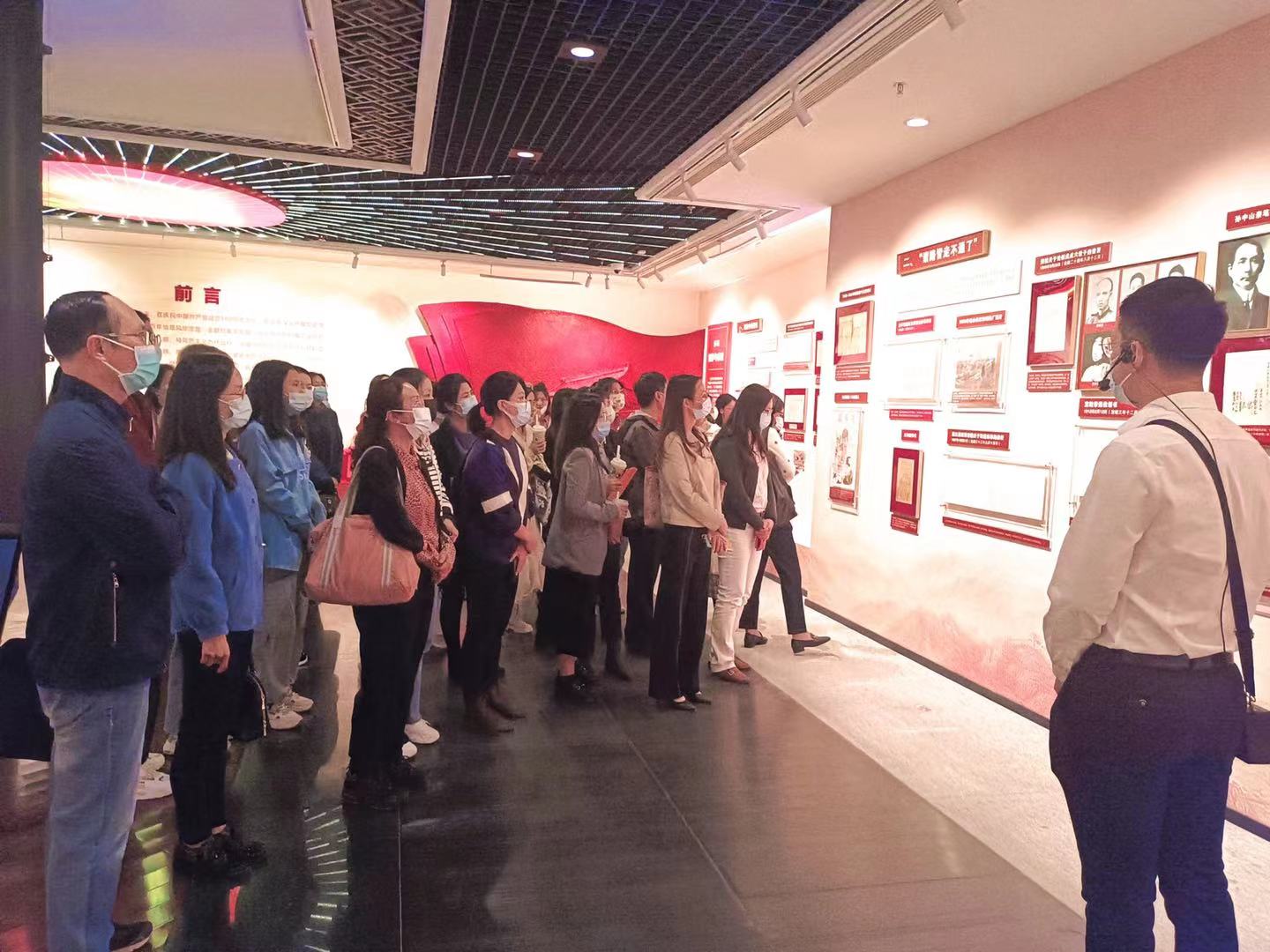 为扎实推进党史学习教育、持续学习贯彻习近平总书记“七一”重要讲话精神,教育和引导广大师生了解党的光辉历史和光荣伟绩,读懂百年大党的胜利密码,感受烈火淬金的精神锋芒,根据省委教育工委工作部署和学校党委要求,马克思主义学院直属党支部于11月9日下午组织党员教师和学生赴广东省档案馆参观“百年恰是风华正茂”主题档案文献展活动。