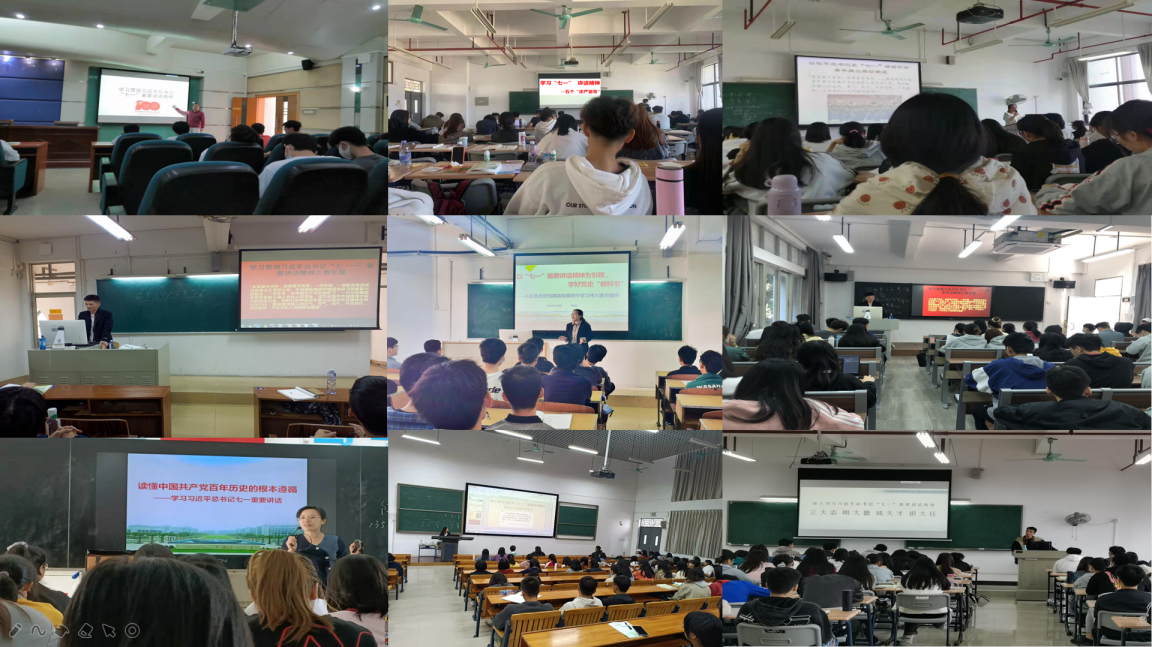 习近平总书记在庆祝中国共产党成立100周年大会上的重要讲话,是一篇马克思主义的纲领性文献,为全党全国各族人民向第二个百年奋斗目标迈进指明了前进方向、提供了根本遵循。为了帮助2021级新生更好地学习与领会“七一”讲话精神,马克思主义学院于11月8-17日在白云、天河荔湾三个校区同步在课堂内开展“七一”讲话精神专题宣讲活动,此次新生“七一”讲话精神宣讲任务由马院思想道德与法治教研室承担。