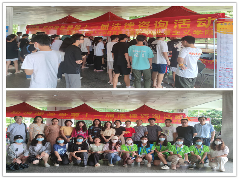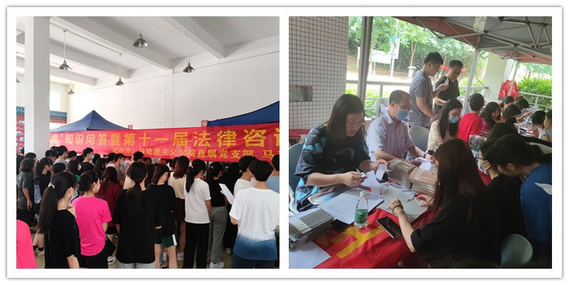 为深入学习贯彻落实习近平总书记关于加强民法典宣传的重要指示精神及党中央、广东省关于深入学习宣传民法典的相关要求,更为了深入学习宣传贯彻习近平法治思想,广泛开展民法典普法工作,马克思主义学院于第15、16周分别在白云校区与天河校区开展“美好人生·民法典相伴”为主题的知识问答暨第十一届法律咨询活动,引导365官网大学生深刻认识到民法典既是保护自身权益的法典,也是必须遵循的行为规范,着力培养大学生依法办事、遇事找法、解决问题用法、化解矛盾靠法的法治意识,以实际行动迎接党的二十大胜利召开。