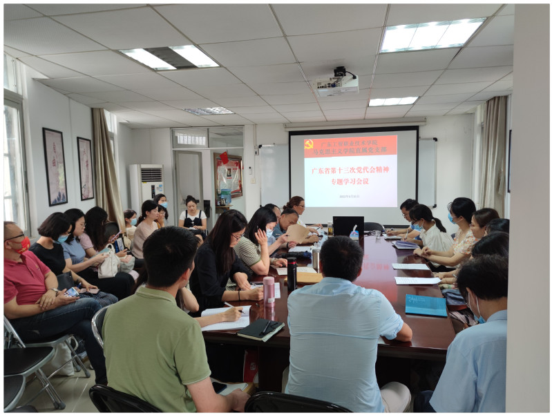 为贯彻落实广东省第十三次党代会精神和省委教育工委学习要求,根据学校党委安排部署,马克思主义学院迅速掀起学习宣传、贯彻落实省党代会精神的热潮。继2022年6月16日下午马克思主义学院直属党支部党员大会和党支委会议开展省第十三次党代会精神专题学习之后,6月21日下午,马克思主义学院直属党支部进一步召开学习贯彻省第十三次党代会精神专题研讨会,马院直属党支部临时负责人宁晓菊主持会议,全体教职工参加会议。