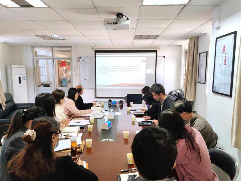 马院直属党支部负责人宁晓菊首先就党的二十大召开以来马院组织全体思政课教师学习党的二十大精神并全方位融入思政课教学工作进行汇报。包括:思政课教师积极参加教育部组织的周末理论大讲堂,积极报名参加广东省教育厅举办的党的二十大精神融入各门思政课备课会;马院直属党支部负责人和支委积极开展党的二十大精神专题党课宣讲;马院全体党员在个人逐字逐句、原原本本自学基础上部门常态化组织集中学、深度学;教研室制定党的二十大精神融入各门思政课实施方案并推进落实;思政课教师加强研究阐释,力求凝练精品、出高水平成果等。