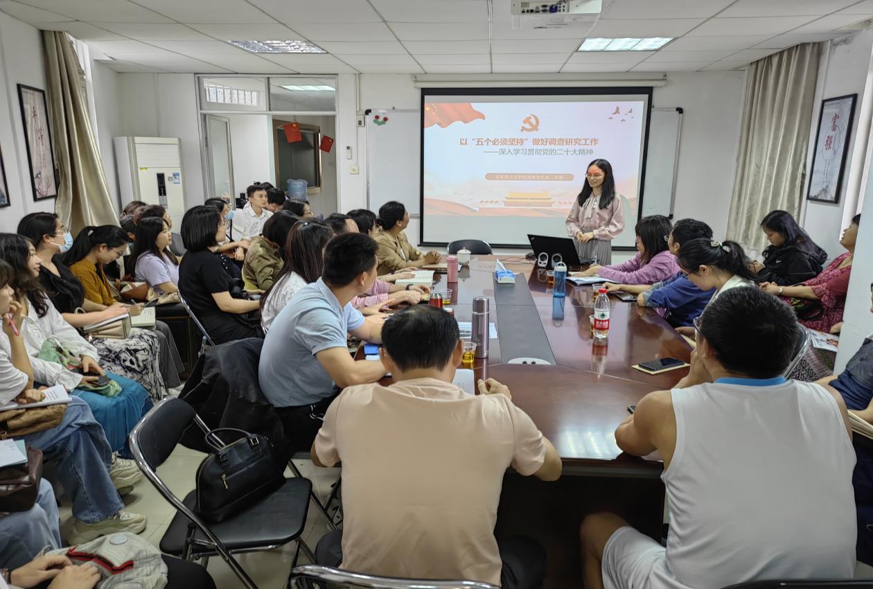 为进一步深入学习贯彻党的二十大精神,10月10日下午,马克思主义学院直属党支部纪检委员兼组织委员李静老师主讲专题党课。党课由马院临时负责人宁晓菊主持,部门全体教师参加。