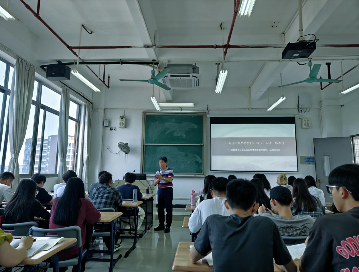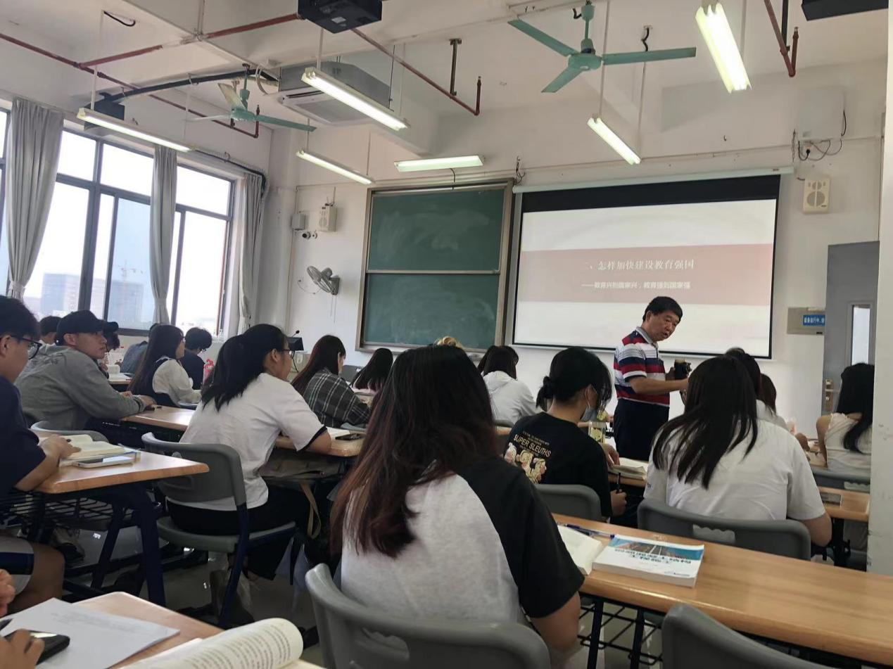 为促进思政课教学经验的学习与交流,提高马克思主义学院新入职教师的教学业务水平,11月3日,马克思主义学院新入职教师齐聚明德楼1-717教室观摩张建南教授主讲的《习近平新时代中国特色社会主义思想概论》课,此次公开课的主题为“社会主义现代化建设的教育、科技、人才战略”。