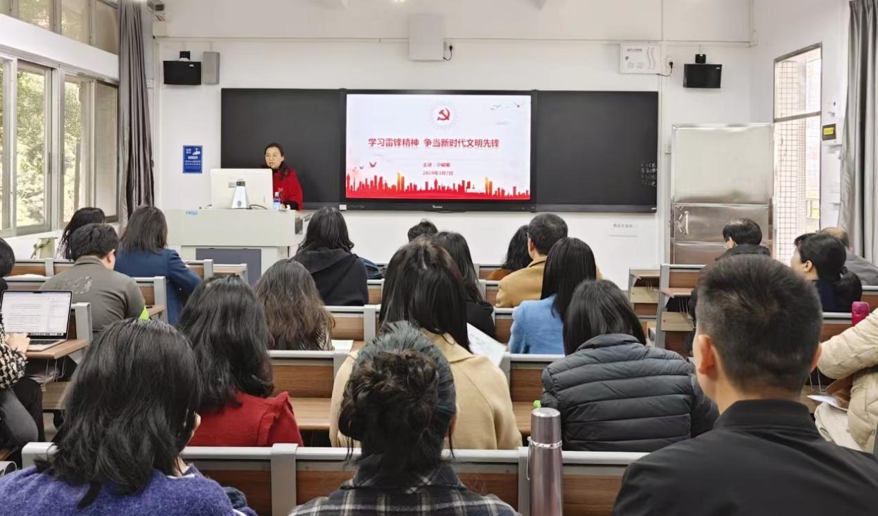雷锋,用短暂而平凡的一生,谱写了永恒的精神篇章。党的十八大以来,习近平总书记对弘扬雷锋精神作出一系列重要论述,指出要“让学雷锋活动融入日常、化作经常,让雷锋精神在新时代绽放更加璀璨的光芒”。在第61个“学雷锋纪念日”之际,为弘扬传承雷锋精神,马克思主义学院直属党支部于3月7日下午开展《学习雷锋精神 争当新时代文明先锋》主题党课宣讲活动,由负责人宁晓菊教授主讲,部门全体教师参加学习。