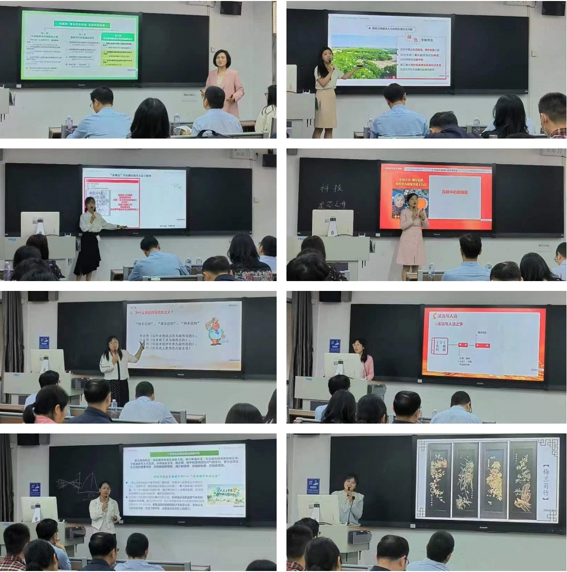 八位参赛选手从《习近平新时代中国特色社会主义思想概论》、《思想道德与法治》、《毛泽东思想和中国特色社会主义理论体系概论》三门课程中选取教学内容进行15分钟现场教学展示。比赛中,选手们结合所选课程特点,充分挖掘教材内涵,精心组织和设计教学内容,注重引导学生深入思考,将理论知识与现实案例相结合,将教学内容与广东时事相融合,既注重理论阐述,又兼顾互动环节,呈现出有创意、有思考、有深度的课堂,充分展示了马院思政课教师饱满的精神状态和扎实的教学功底。