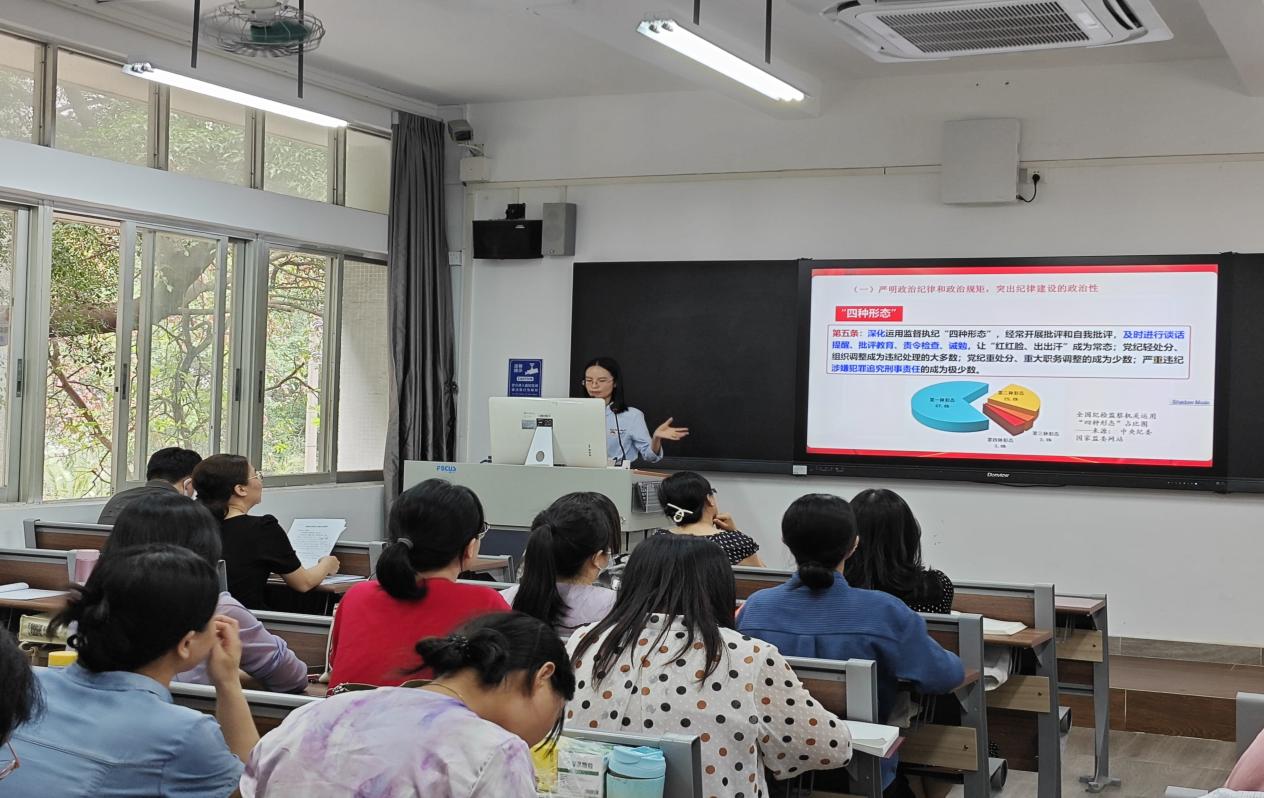 2024年4月16日下午,马克思主义学院直属党支部举行以《中国共产党纪律处分条例》为主题的专题党课。由支部纪检委员兼组织委员李静老师主讲,旨在进一步加强党员纪律教育,提高全体党员的政治觉悟和纪律意识,推动全面从严治党向纵深发展。