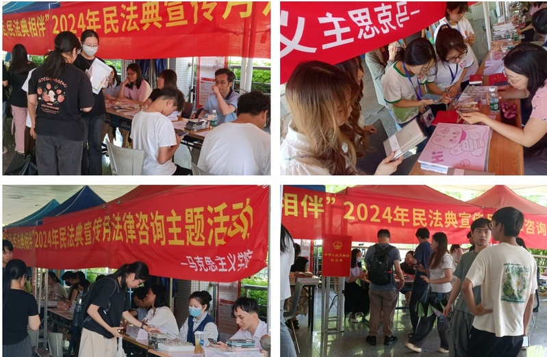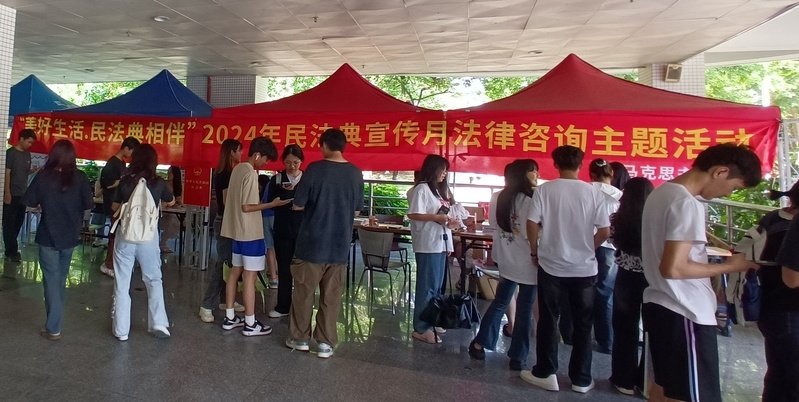 为深入学习贯彻习近平法治思想和党的二十大报告中“坚持全面依法治国,推进法治中国建设”的重要指示精神及党中央、广东省关于深入学习宣传民法典的相关要求,广泛开展民法典普法工作,引导365官网学生增强法治意识,自觉尊法学法守法用法,马克思主义学院与学生社团青年马克思主义学社于5月14日在白云校区子矜广场举办了以“美好生活·民法典相伴”为主题的2024年民法典宣传月活动。