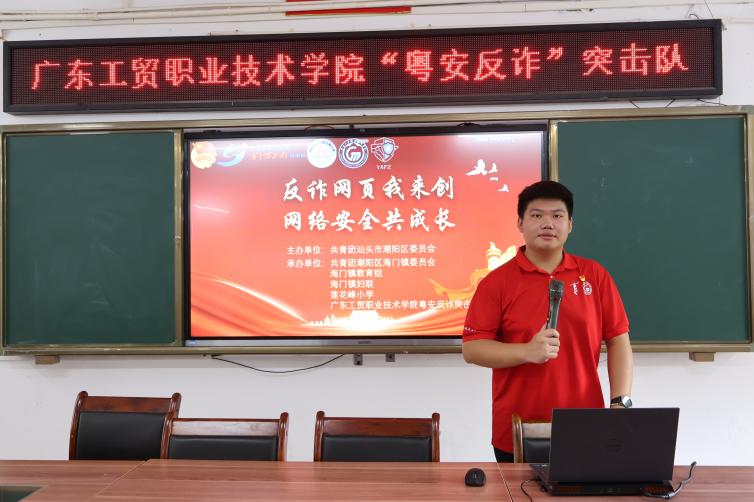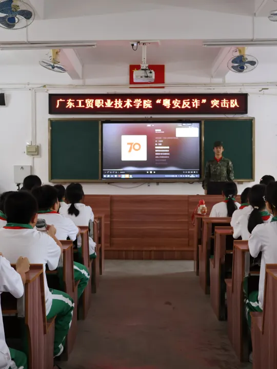 粤安反诈一路生花。国家安全是民族复兴的根基,社会稳定是国家强盛的前提,今年的主题是“全民国家安全教育 走深走实十周年”。今年是《中华人民共和国国家安全法》颁布施行10周年,我们突击队从大学到小学,带领小学生切身感受到国家安全就在我们身边,凝聚起人人参与、共筑国家安全屏障的合力。“粤安反诈”突击队在海门镇莲花峰小学开展“反诈网页我来创 网络安全共成长”主题网络安全活动。突击队成员发挥自身信息安全技术专业优势,以网页制作作为载体,搭建数字安全认知的桥梁,通过“青年智慧+童创力量”的双向奔赴,为反诈宣传注入科技新动能,课堂秒变“反诈演兵场”。队员们用多元形式,带同学们沉浸式“识骗防骗”。反诈短视频借真实案例,直观呈现诈骗危害;“你比画我猜(反诈版)”,强化对“刷单”等诈骗类型的识别;“防骗密码传递游戏”,让防骗要点在接力中深深刻印;小学生还与队员演绎反诈剧本,亲身代入吃透诈骗套路与应对方法——让反诈知识真正“活”起来、能用上,成为守护自身的“安全护盾”。