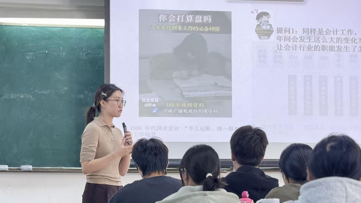 课堂采用“专业连连看”的导入方式,从专业视角破题。杨婕老师以“改革开放让会计行业的职能发生了怎样的转变?”这一问题切入,迅速吸引了会计专业学生的注意力,拉近了学生与思政课的距离。她指出,从手工记账到会计电算化,再到智能化财务管理,会计职能的演变正是改革开放推动经济社会发展的生动体现。进一步引导学生思考:“华为作为民营企业,能支撑起全球业务的财务体系,背后离不开什么政策支持?”这一问题将专业思考与政策环境联系起来,为学生理解改革开放理论埋下伏笔。