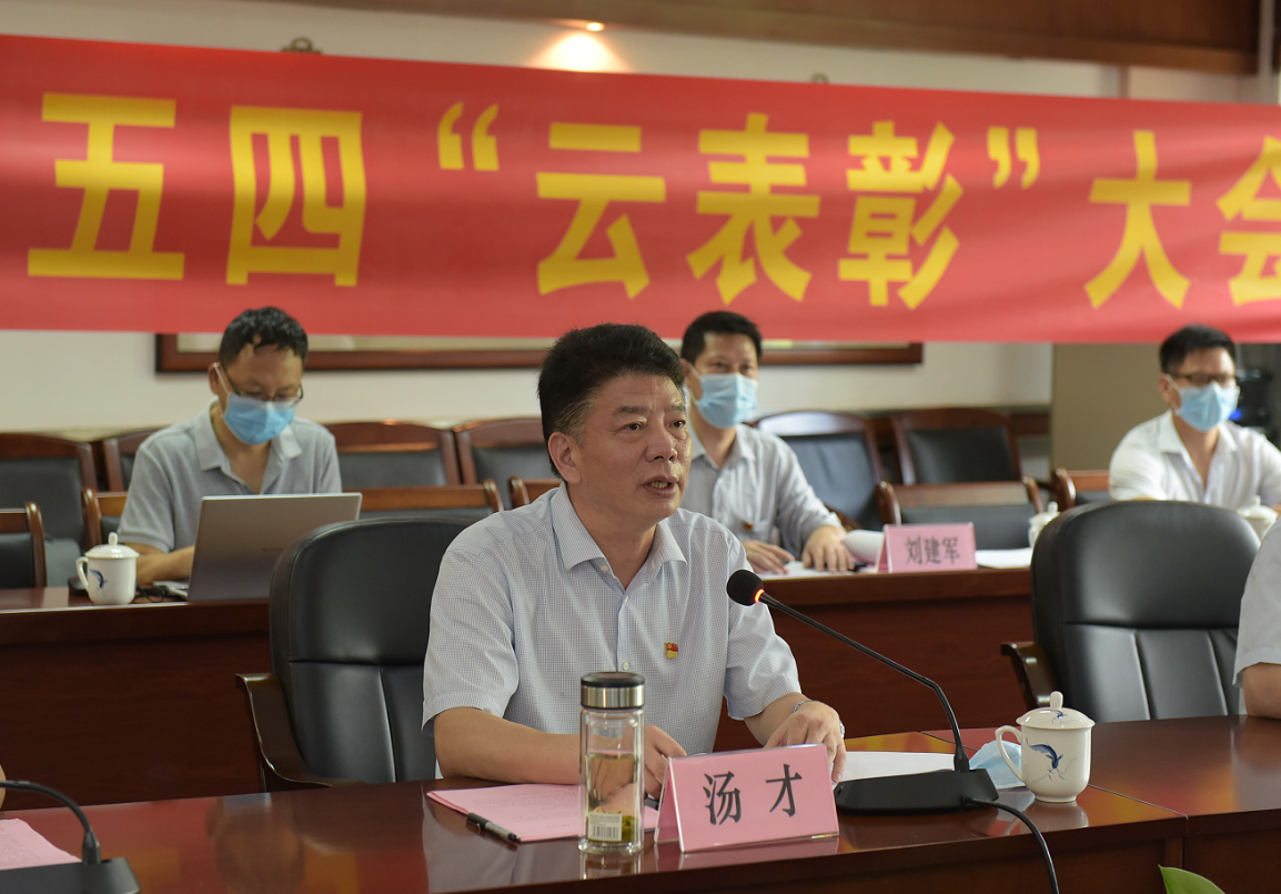 会议在庄严的“云升旗”仪式后开始。会议上,学校党委书记汤才同志作了《坚定理想信念,练就过硬本领,建功立业新时代》的主题讲话,讲话中他代表学校党委向青年朋友们致以诚挚的问候,向受到表彰的先进集体和个人表示热烈的祝贺,回顾了五四运动的伟大历史意义,深情寄语工贸青年:一要锻铸理想信念,坚持不懈以习近平新时代中国特色社会主义思想培根铸魂,二要锤炼高尚品格,践行社会主义核心价值观,三要勇担时代责任,勇于砥砺奋斗,四要练就过硬本领,积极投身强国伟业。汤书记鼓励工贸青年继承和发扬五四精神,不忘初心,牢记使命,只争朝夕,不负韶华,与工贸同发展,与祖国共奋进,在实现中华民族伟大复兴中国梦的新长征路上奋勇搏击!为学校国家“双高”建设、一流高职院校建设及创新强校工程奉献青春力量。